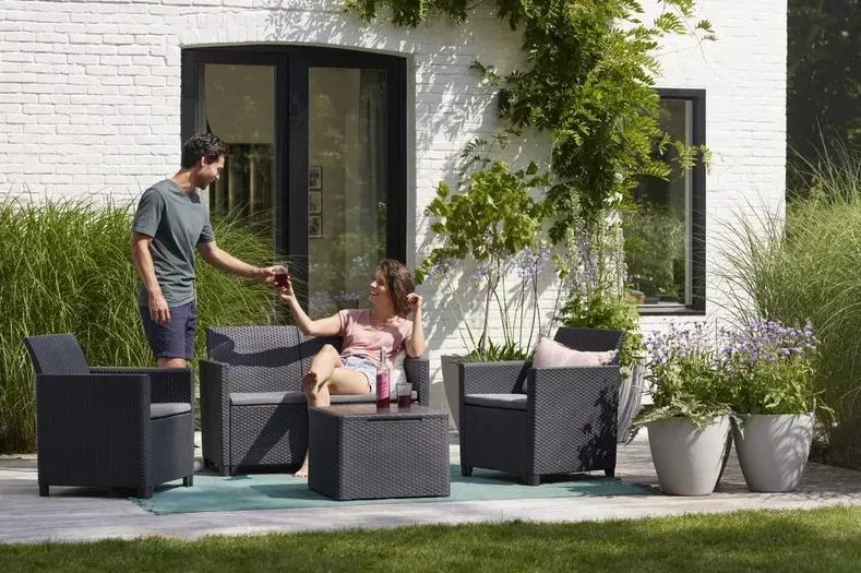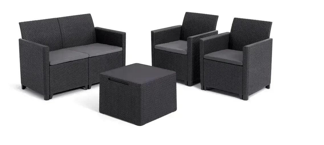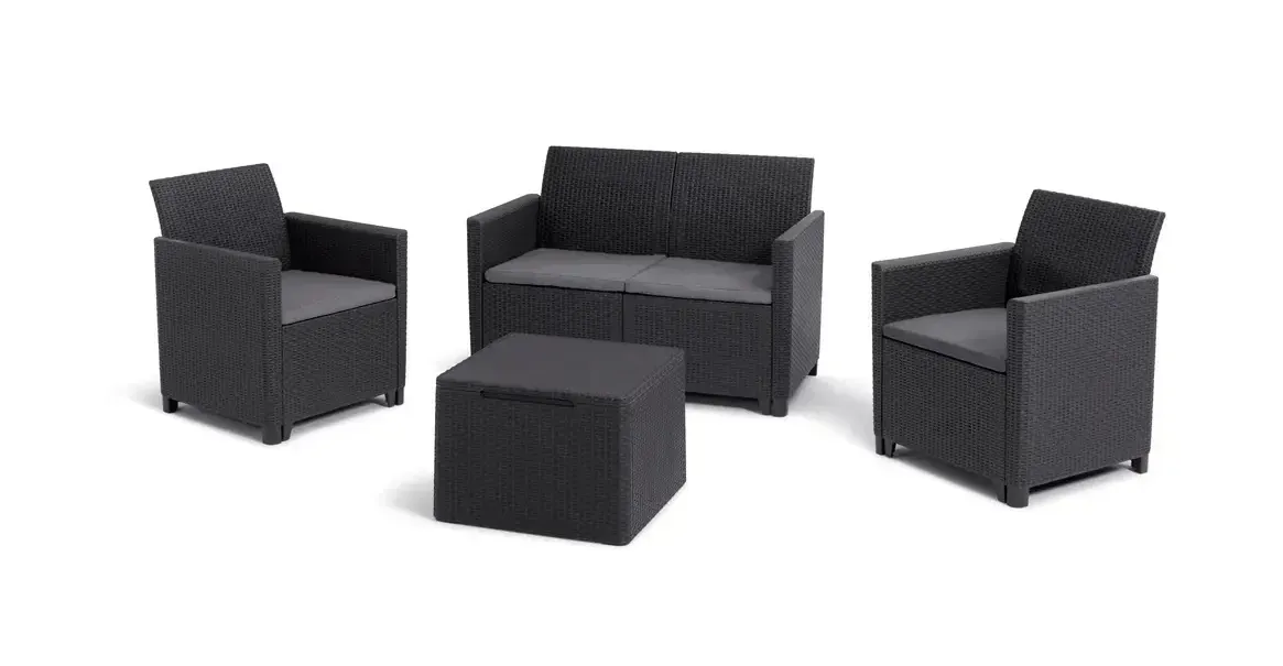 Keter Claire Loungeset Graphite met Opbergtafel