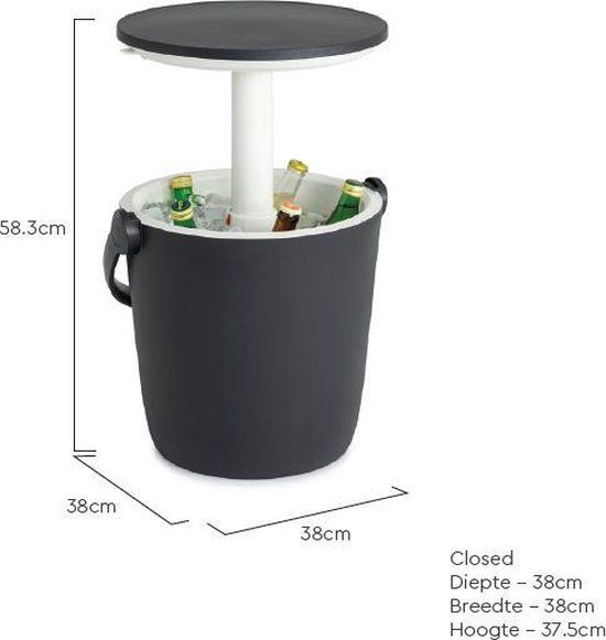 - Buitenmaten: 37.5 x 38 x 38 cm