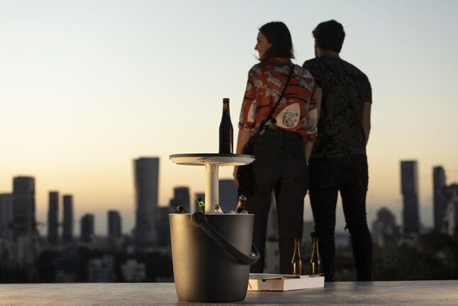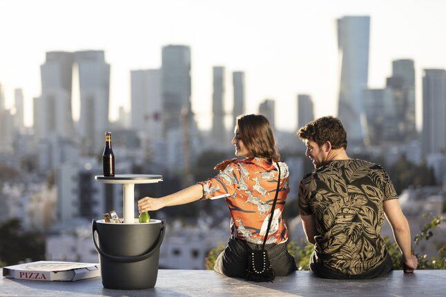 lekker ijskoud. Met 1 klik verandert hij in een handige tafel om je