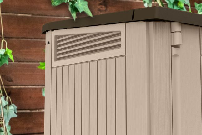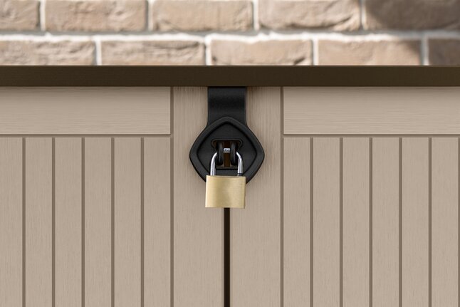 Via twee openslaande deuren en het deksel open en sluit je de containerberging eenvoudig. Met 880 liter aan ruimte kun je veel van je tuinaccessoires in deze berging netjes opbergen. Aan de binnenkant van het deksel zijn twee haken gemonteerd die je vastmaakt aan het deksel van je container. Hierdoor gaat het deksel van de container direct open.