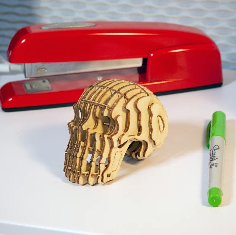 Kikkerland 3D Houten Puzzel Schedel 7x6.5 cm