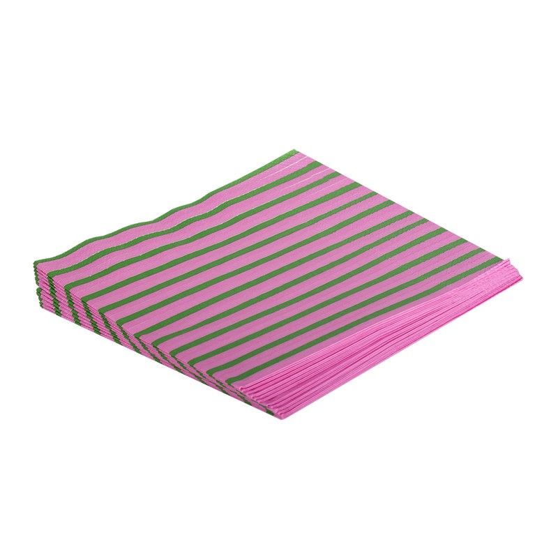 Kitsch Kitchen Servetten Streetstyle Stripe Pink/Green 33x33 cm