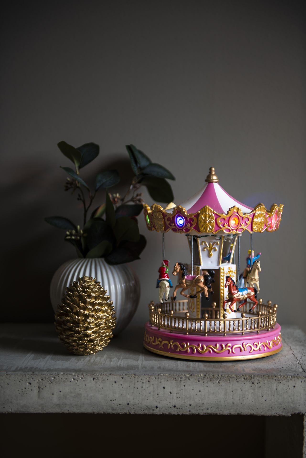 Konstsmide LED Caroussel met Muziek - Roze/Wit - 14 leds - Multicolor - op Batterijen (excl.) & USB