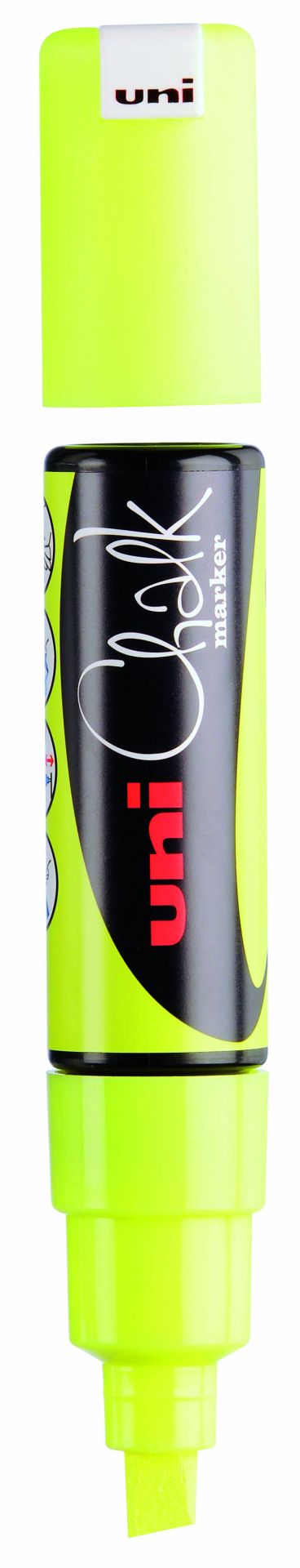Krijtmarker 8 mm Schuine Punt Chalk Marker by Uni - Fluo Geel