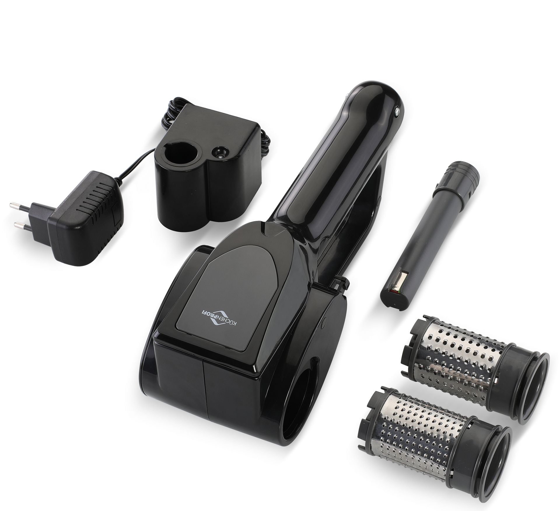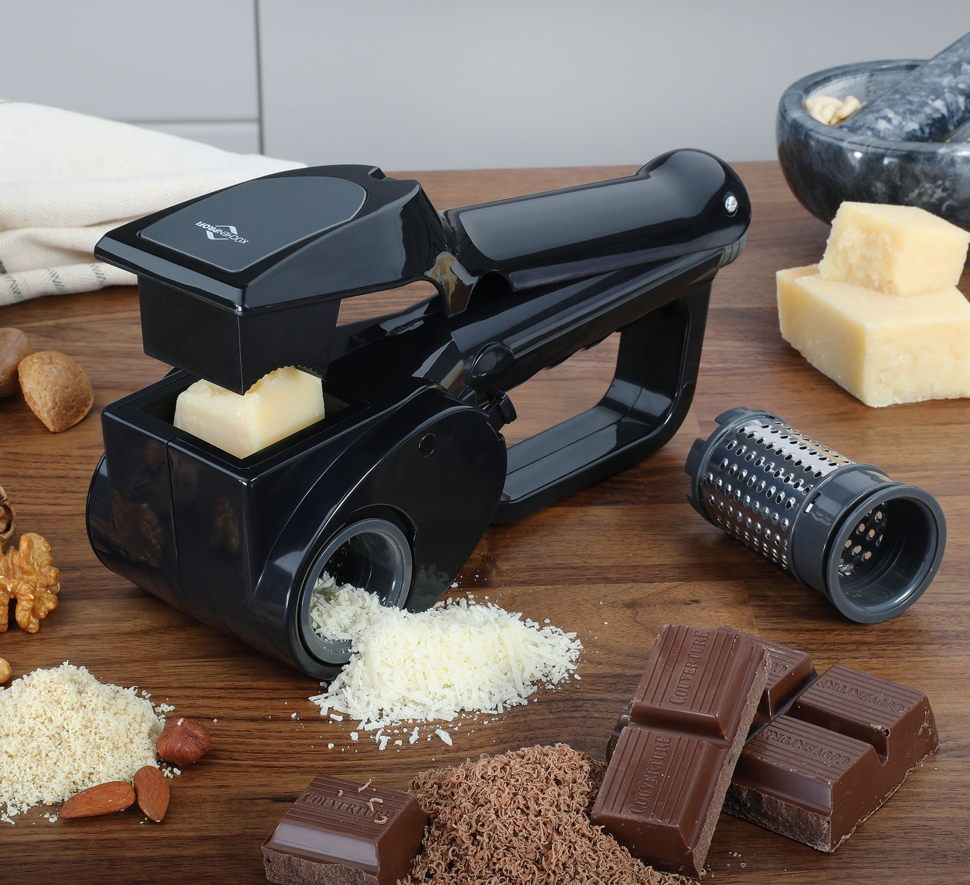 Kuchenprofi Elektrische Kaasrasp Emilia Zwart 26cm met 2 Raspen Fijn/Grof - met Oplaadstation - ook voor Chocolade, Amandelen en Noten