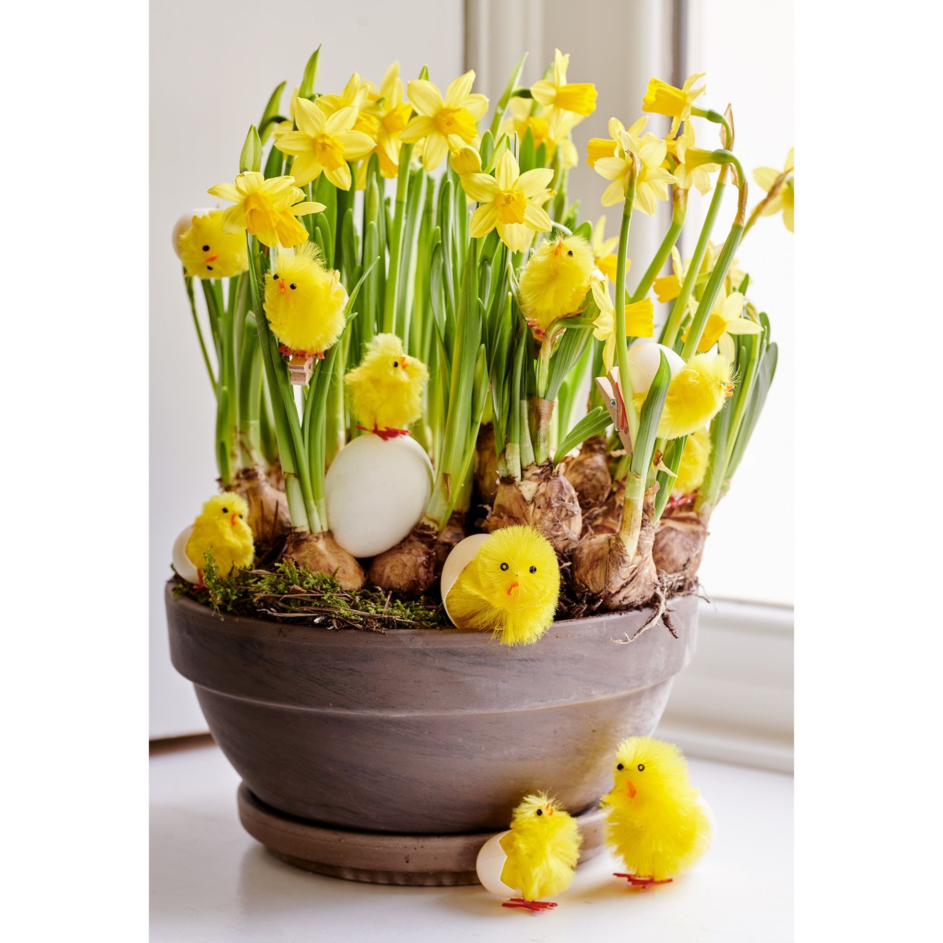 Kuiken Chenille Geel op Wasknijper set 8 stuks