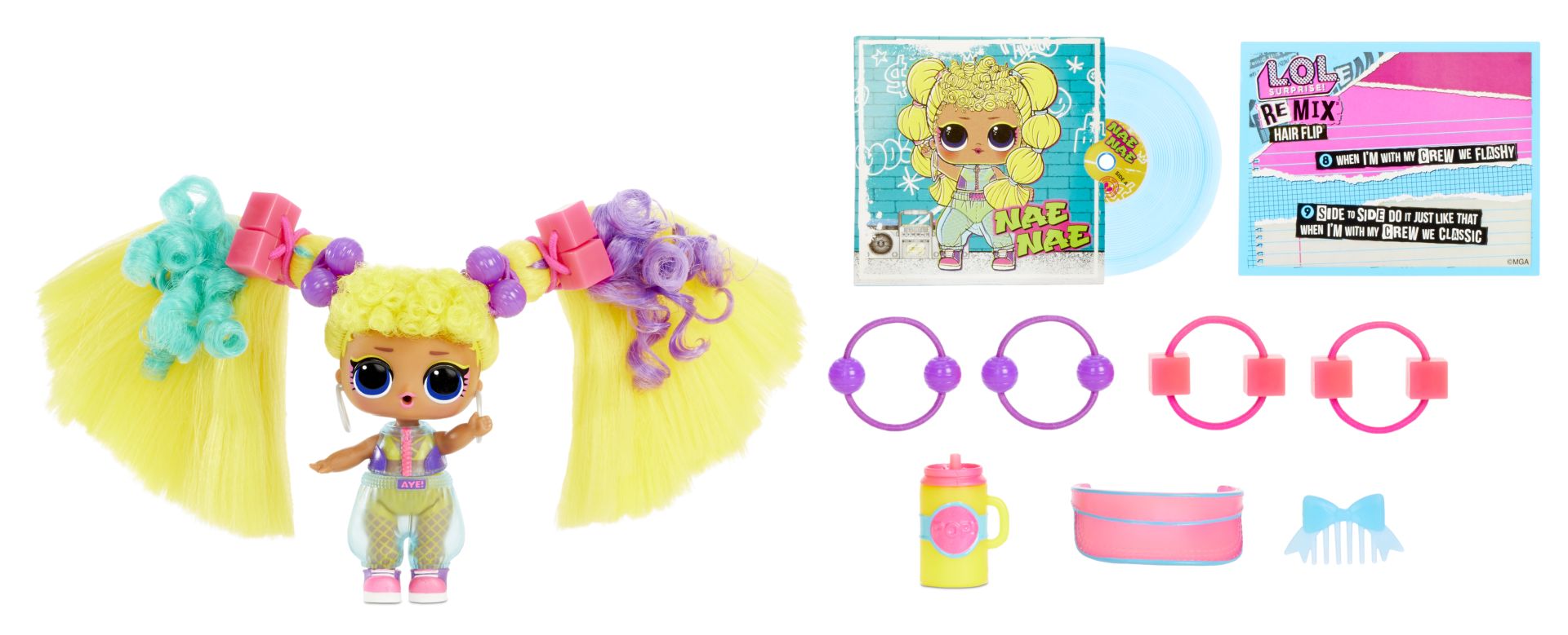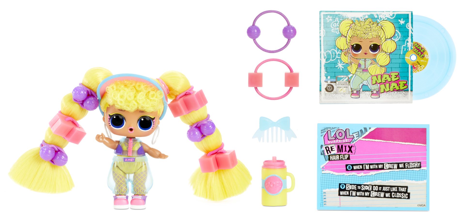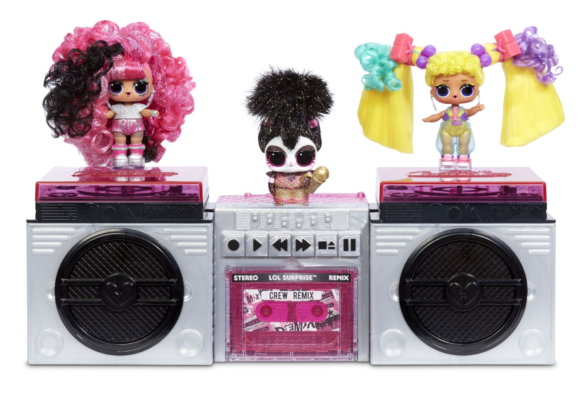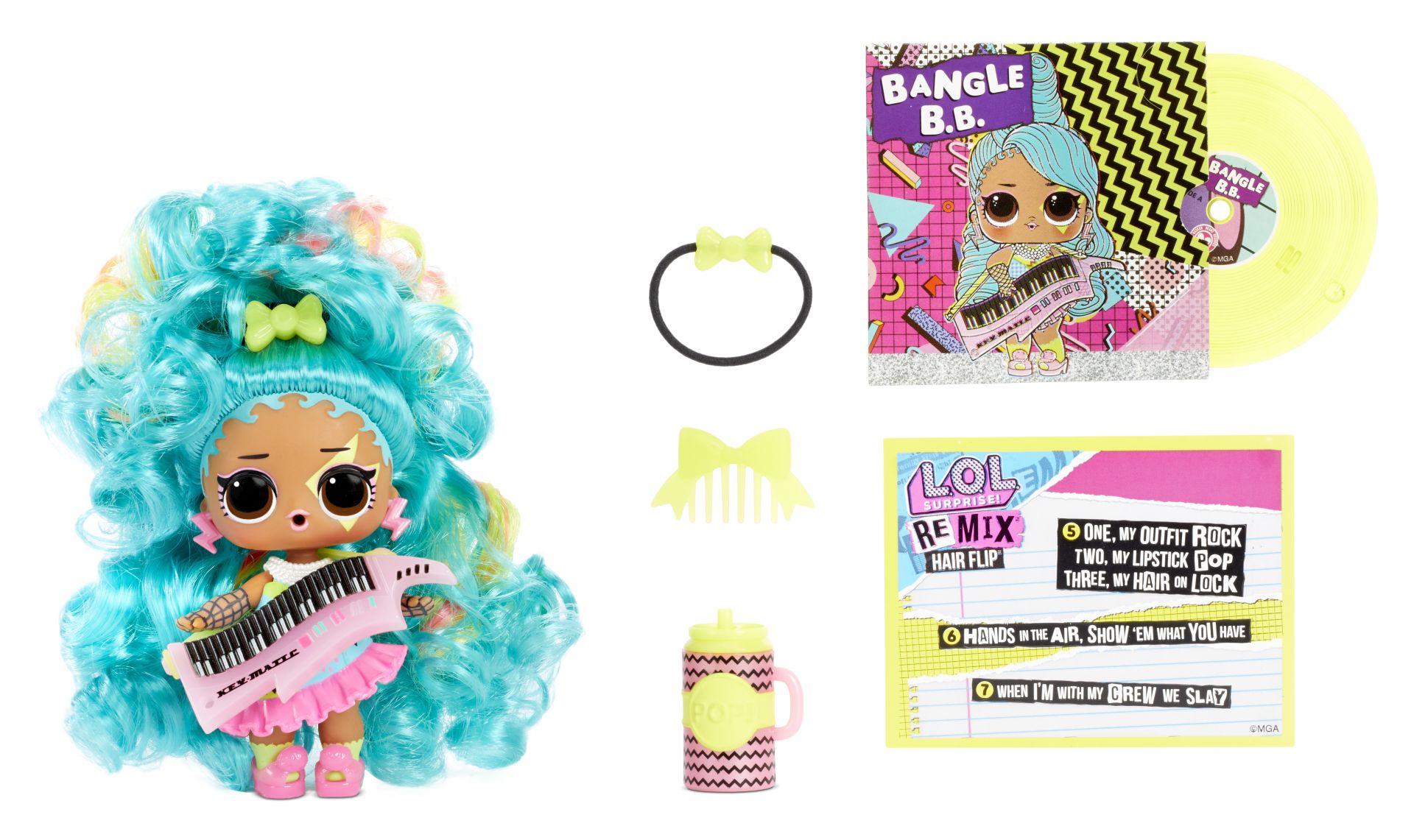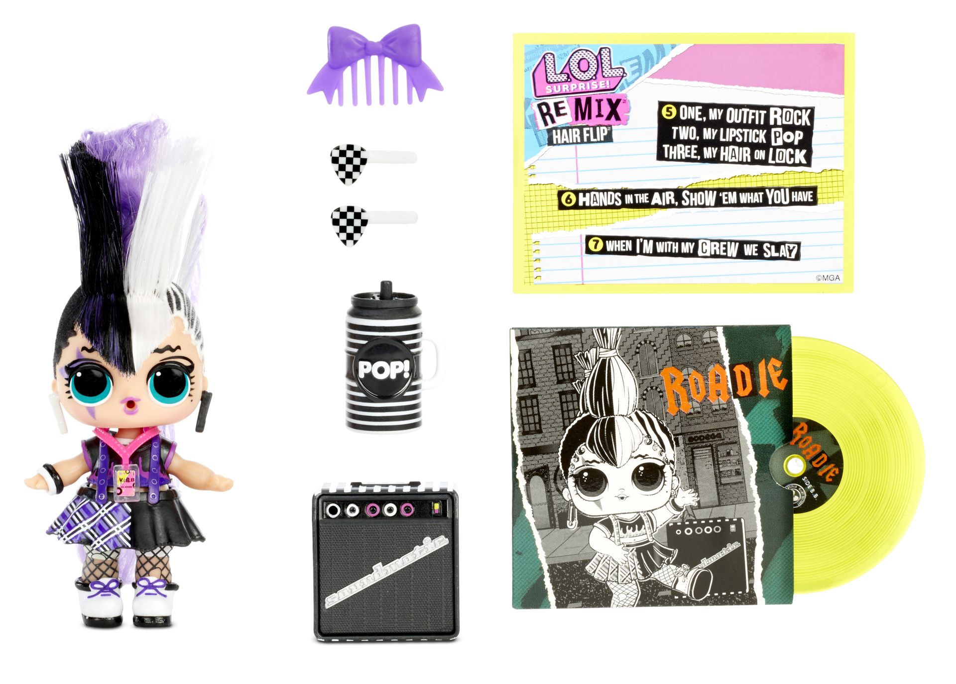 Verzamel alle 12 de L.O.L. Surprise! Remix Hair Flip-poppen. Verzamel om een boombox te bouwen door de verpakkingen van 2 L.O.L. Surprise! Hair Flip-poppen en 1 L.O.L. Surprise Remix Pets met elkaar te verbinden. Verzamel muziek en songteksten van de hele L.O.L. Surprise! Remix-lijn om de song compleet te krijgen. Of mix en match songteksten om je eigen remix te creëren.