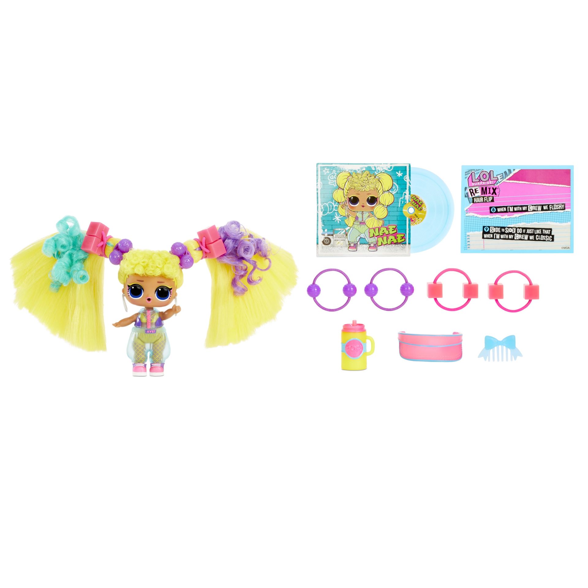 L.O.L. Surprise! Remix Hair Flip-poppen zijn gloednieuwe personages die elk een muziekgenre vertegenwoordigen: pop, r&b, hiphop, country of rock. Ze staan klaar om op te treden en hun ultieme concert te geven tijdens hun -So Extra Tour-, maar alle muziek is geremixt! Help ze hun song uit te pakken. De verpakking speelt echt muziek af. Onthul de verzamelbare muziekplaat van elke pop en speel hem af op de platenspelerverpakking.
