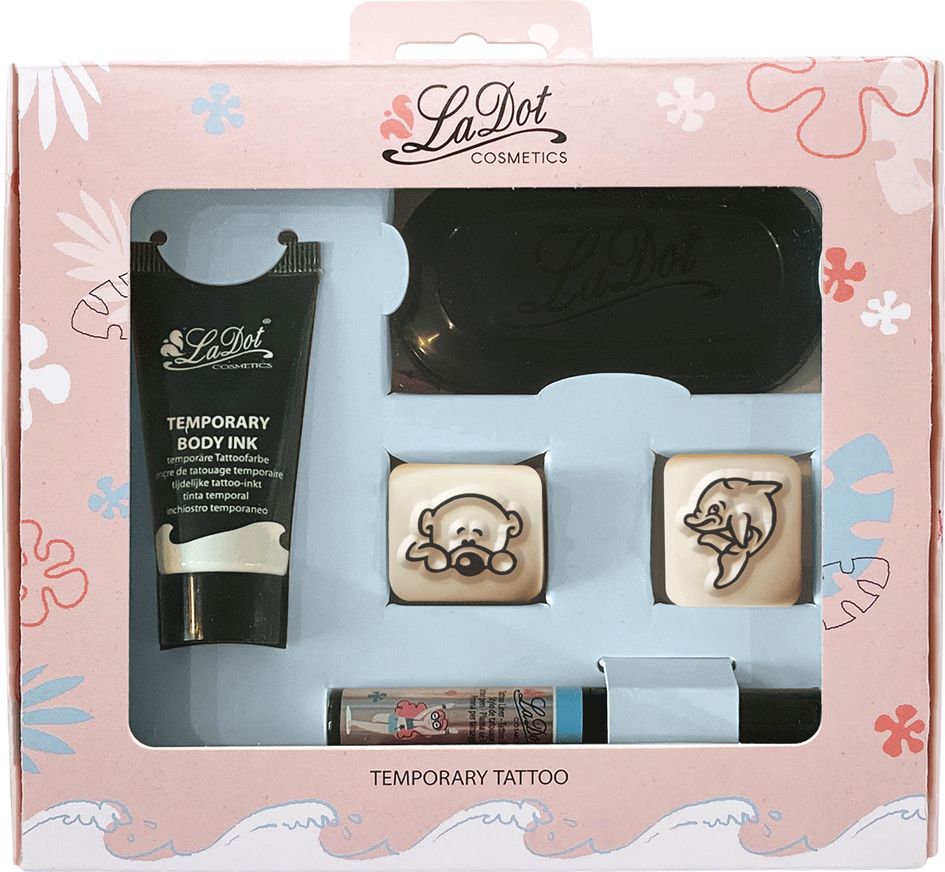 LaDot Tijdelijke Tattoo Stempel set Inkt, Stempelkussen, Liner Blauw en Stempel S19-S23