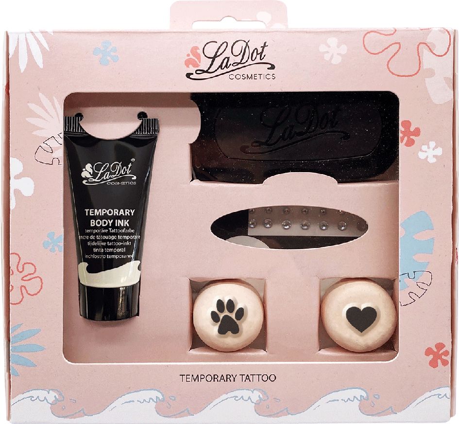 LaDot Tijdelijke Tattoo Stempel set Inkt, Stempelkussen, Rhinestones en Stempel