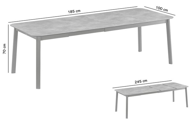 Lafuma Tuintafel Oron Alu Ciment 190-250 x 100 cm