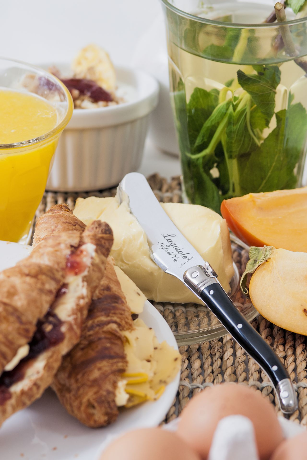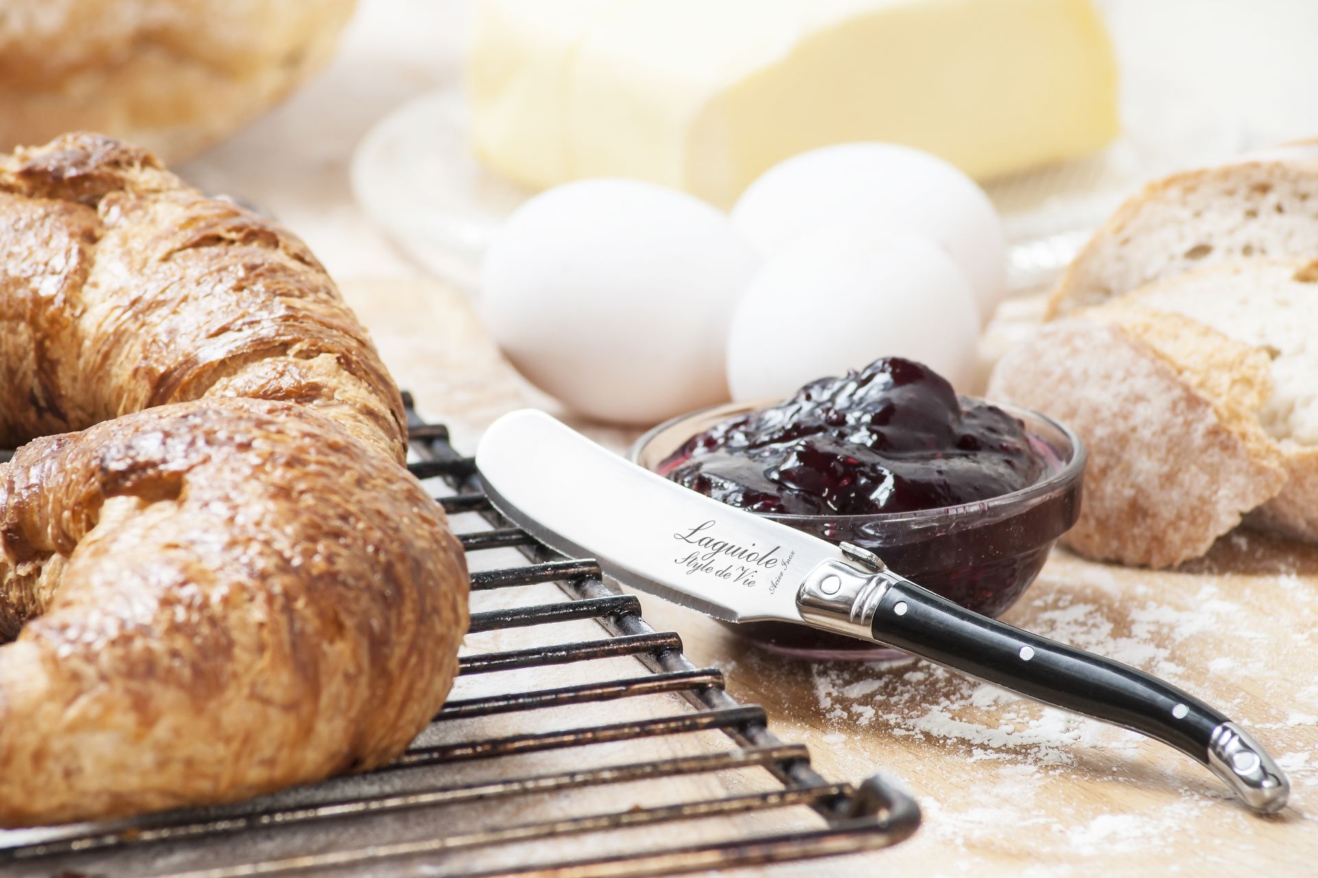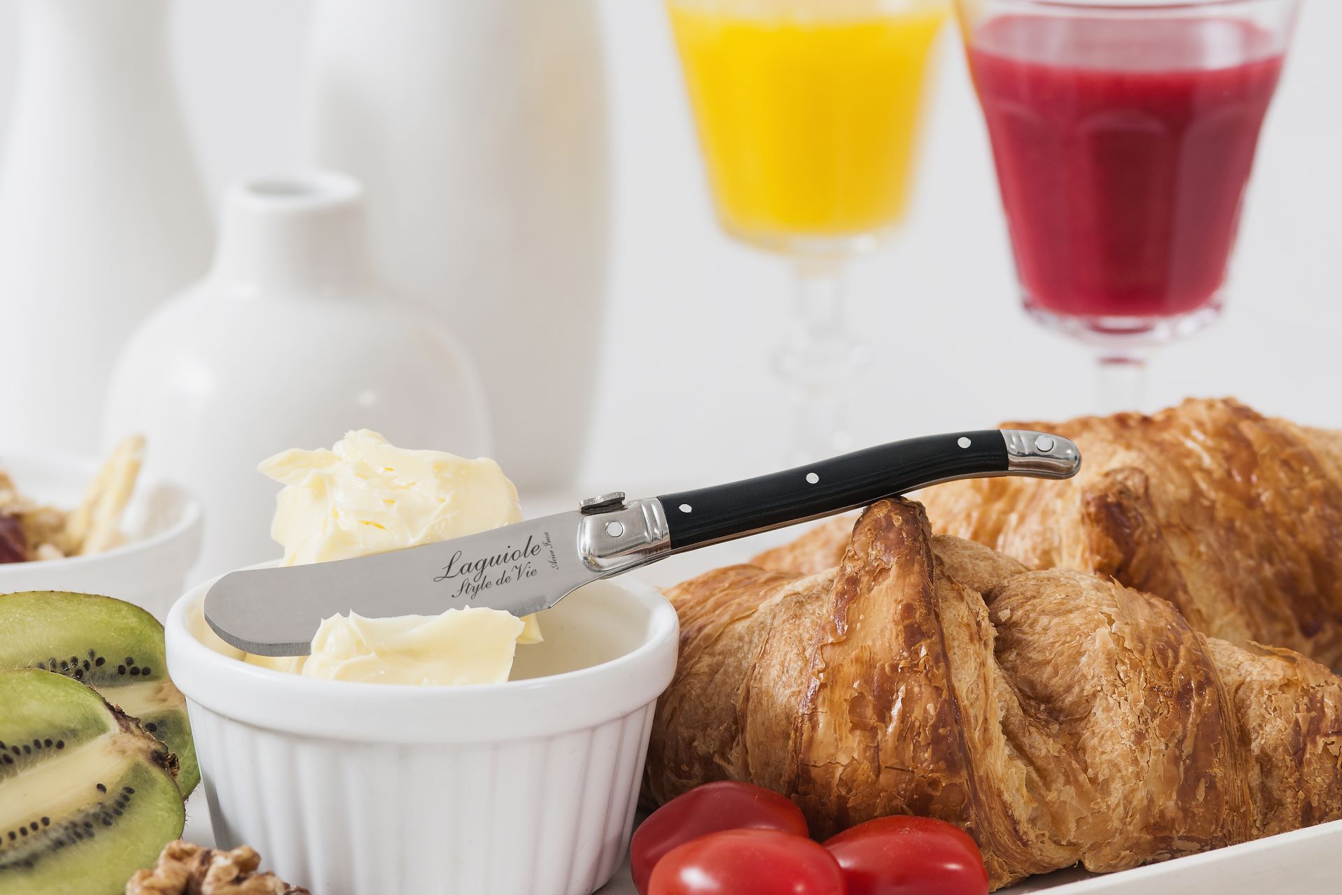 Laguiole Botermes set 4 stuks Zwart in Houten Tray by Style de Vie