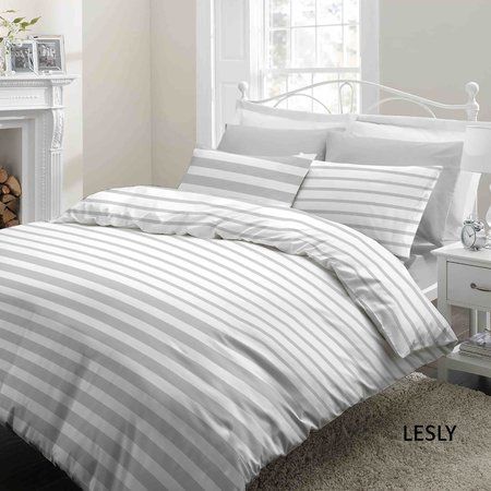 Laken met 1 Sloop Lesly Strepen Grijs 180x290 cm Flanel