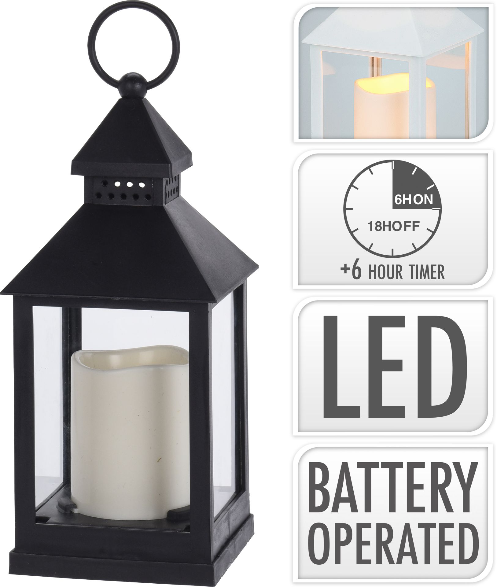 Lantaarn met LED Kaars 23cm Zwart - Warm Wit