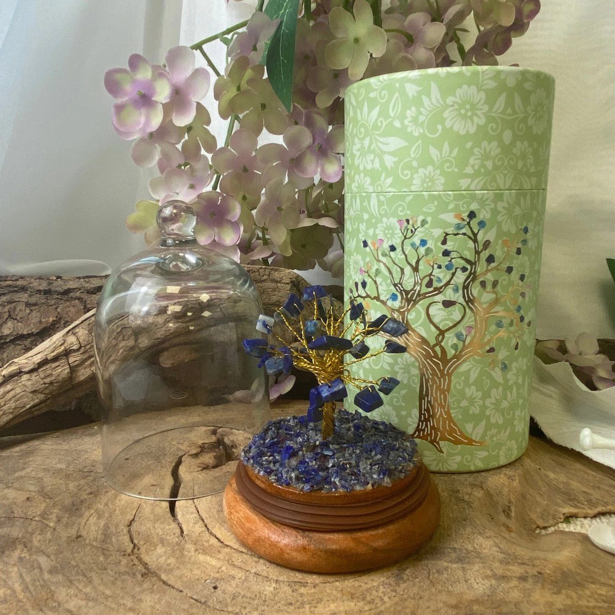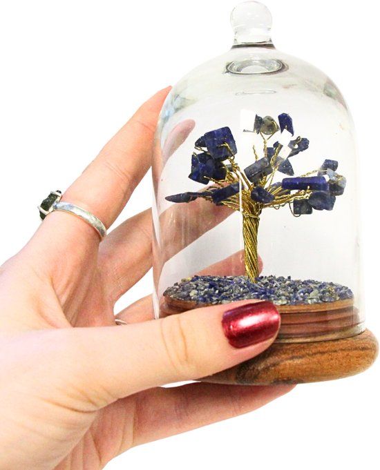 Lapis Lazuli Edelsteen Boompje onder Glazen Stolp - 7.2x12.6 cm