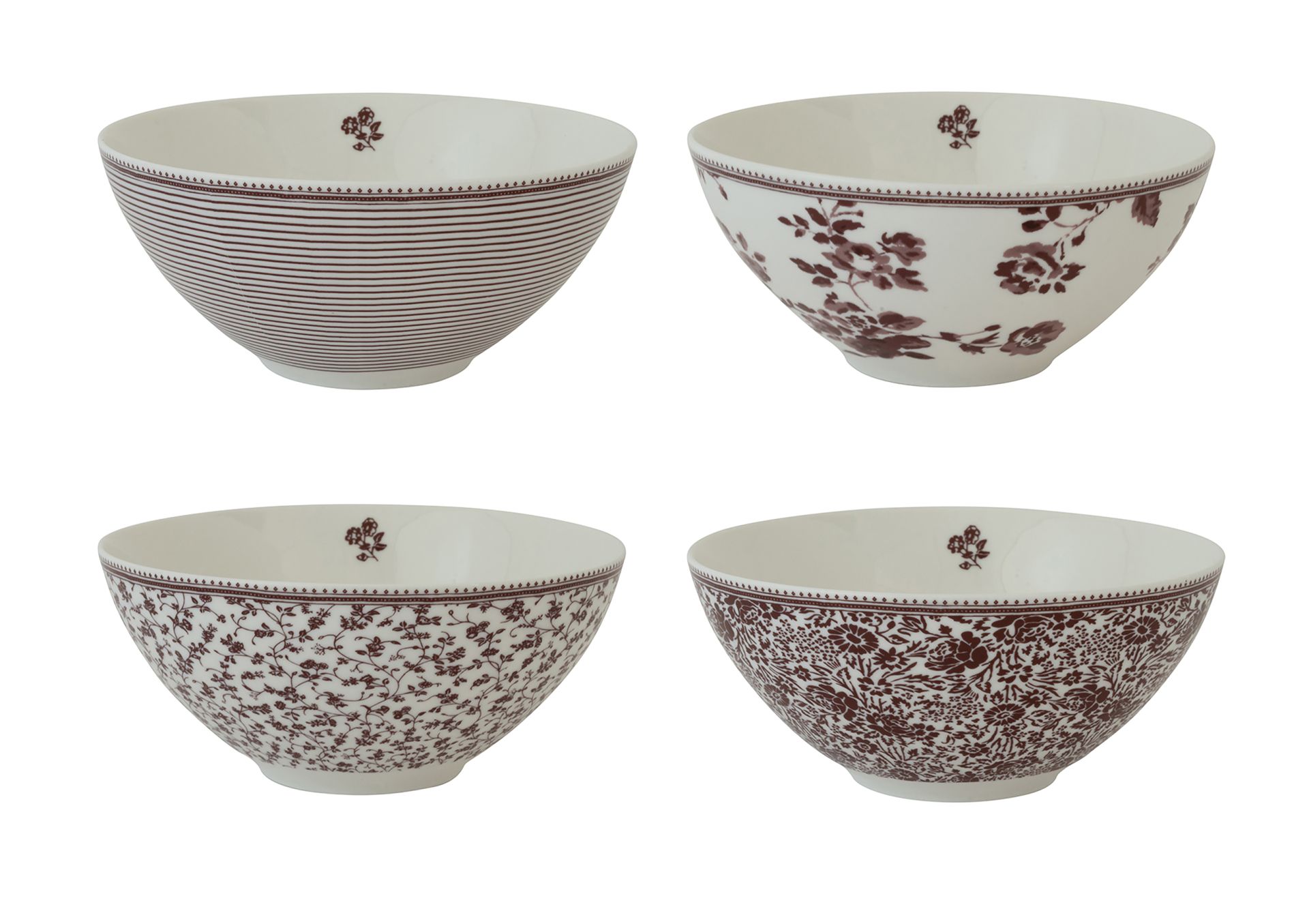 Laura & Ashley Bowl Damson Rose 16cm set 4 stuks