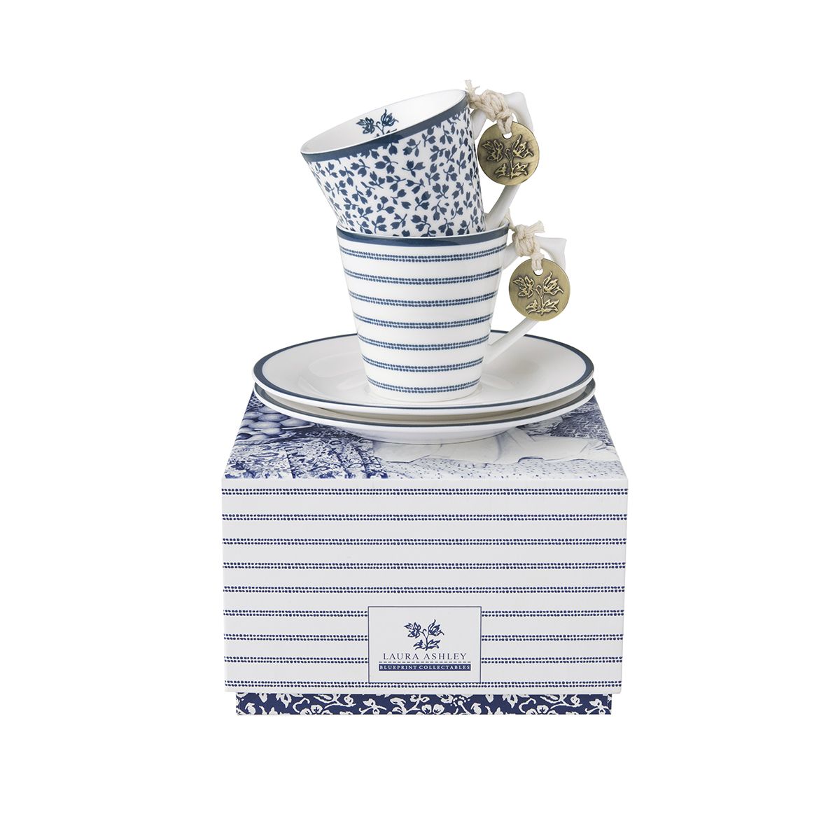 Laura Ashley Espressotas 90ml met Schotel 4-delig - Porselein - 2 Tassen met 2 Schotels