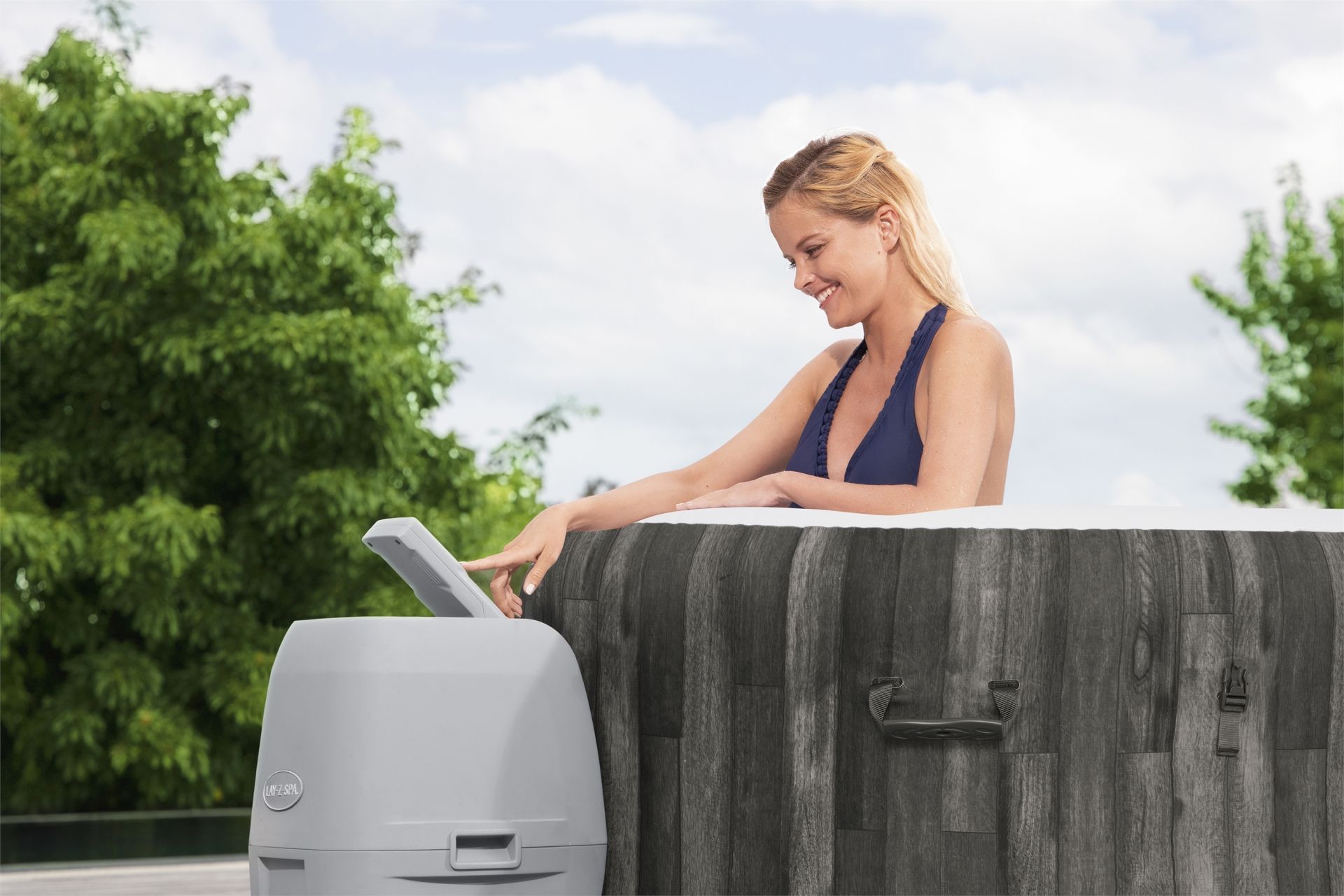 - Digitaal controlepaneel & spapomp met geïntegreerd filtersysteem bevat bekerhouders en is toegankelijk vanuit de spa