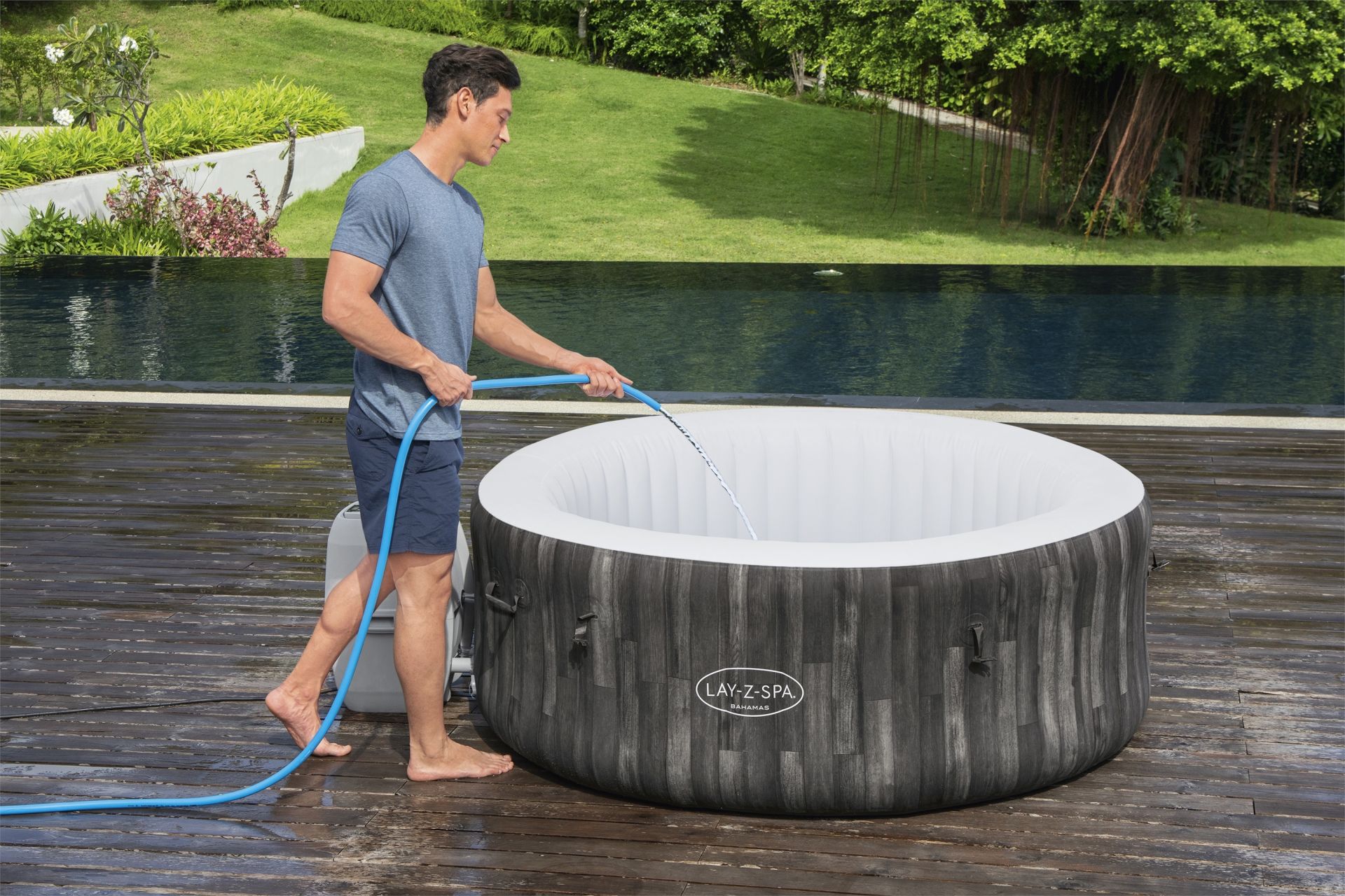 - Inhoud: 1 spa, 1 zwembadafdekking, 1 spapomp, filterpatroon (VI), 1 ChemConnect™-dispenser, reparatiepatch, AirJet™-systeem