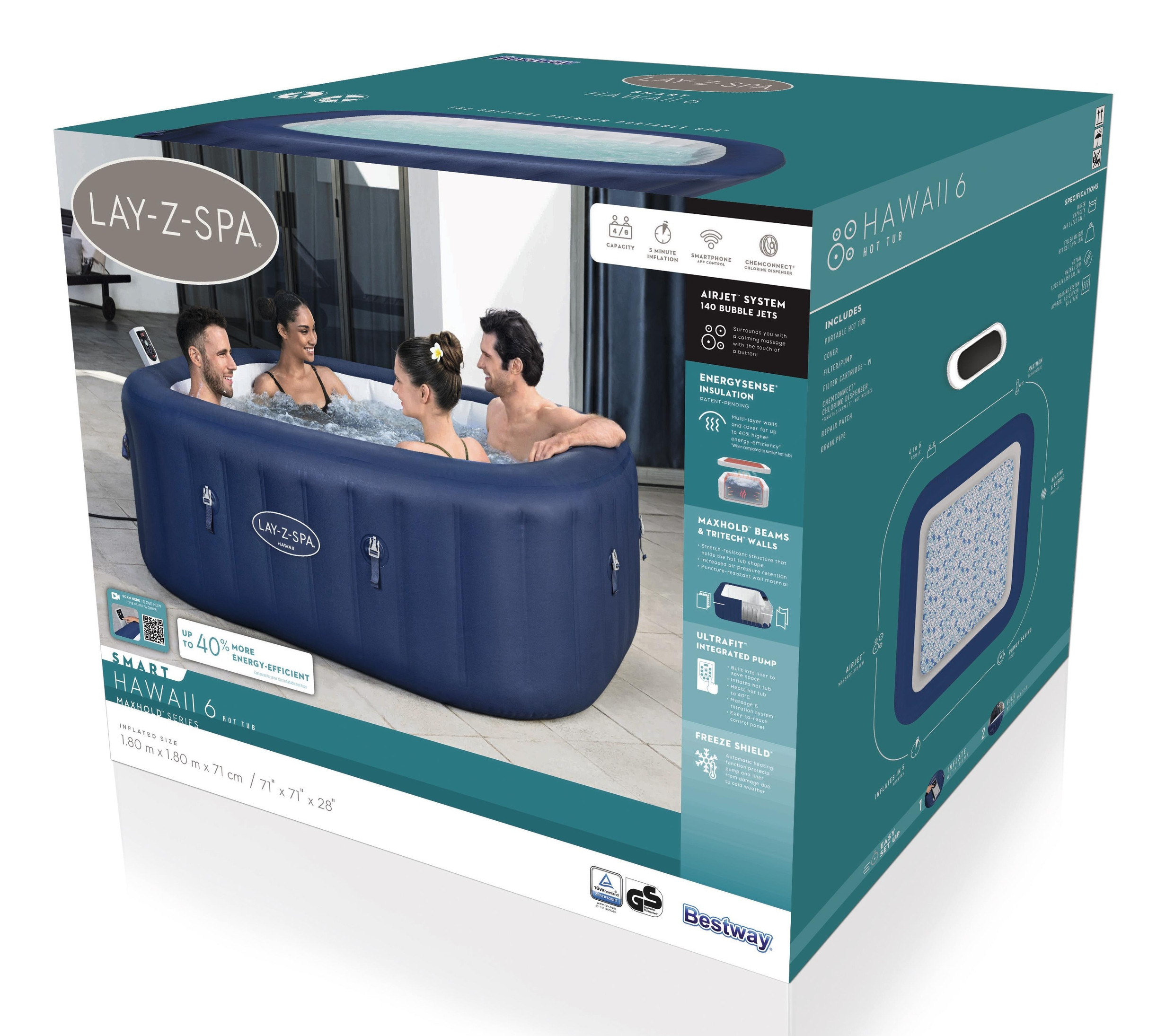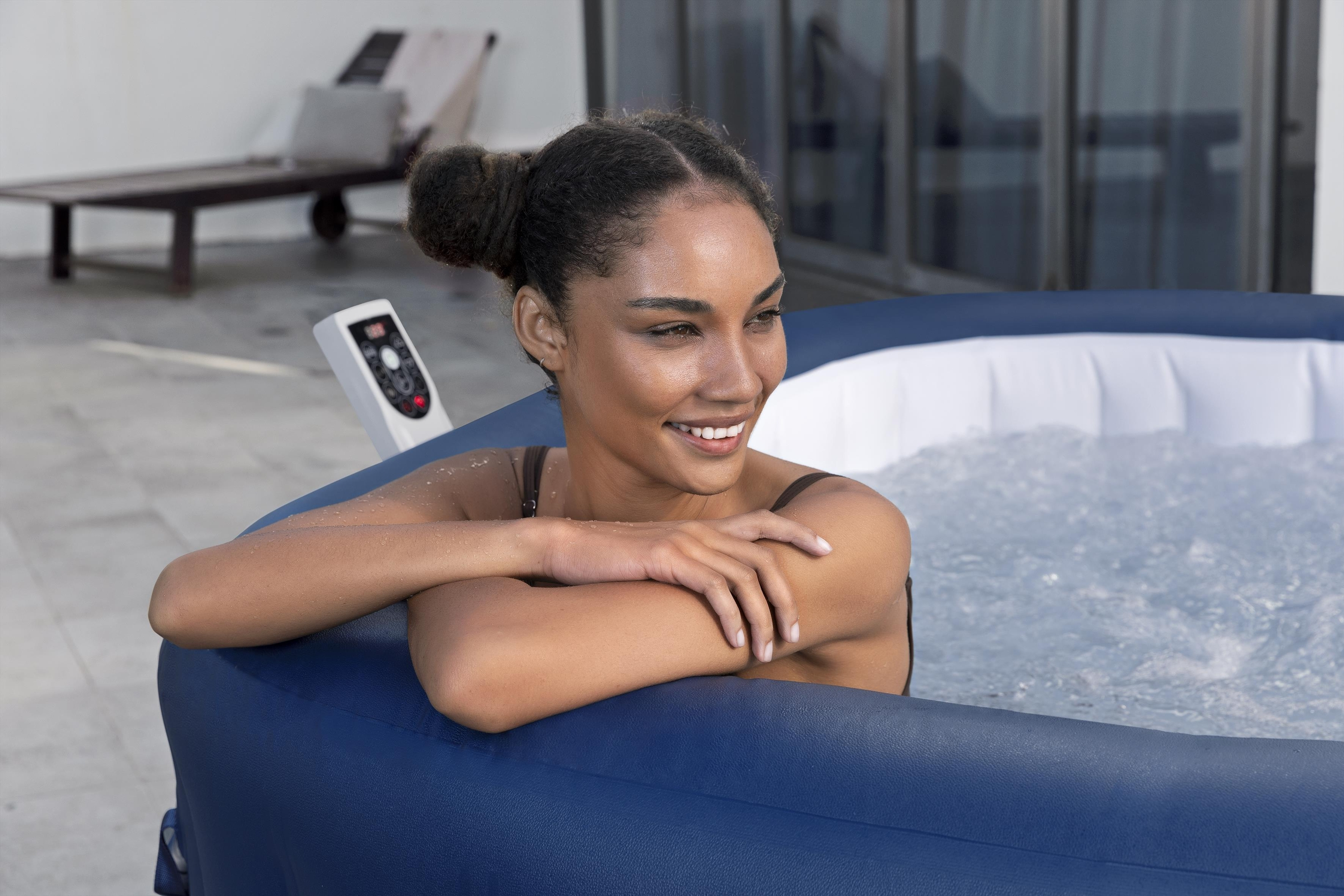 Deze spa kan bediend worden via uw smart-apparaat met de Bestway SmartSpa App. Deze innovatie maakt deze spa één van de handigste spa's op de markt. Met de app kunt u uw spa op de perfecte temperatuur instellen, de energiebesparende timer activeren, de waterfiltratie aanzetten en het massagesysteem bedienen - allemaal vanuit de palm van uw hand.