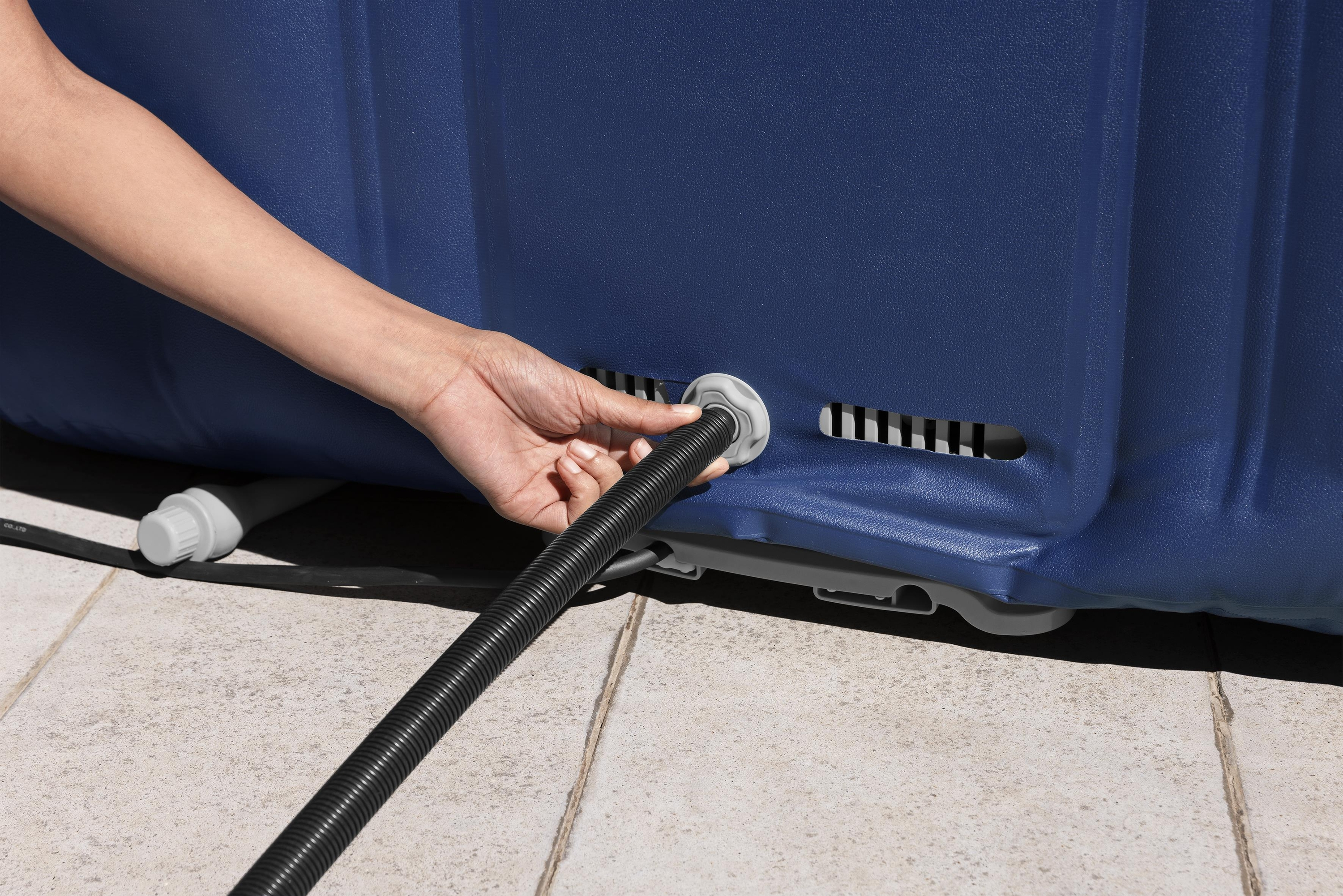 Deze spa is zowel gemakkelijk en handig, doordat het komt met een geïntegreerde UltraFit pomp die in de voering is gebouwd en die de spa snel opblaast en verwarmt, het water filtert en het massage systeem regelt. Het paneel is gemakkelijk bereikbaar vanuit de spa zodat u uw instellingen kunt bedienen zonder het warme water te moeten verlaten. Ook inbegrepen is een ChemConnect dispenser die het water schoon en gezond houdt door de juiste hoeveelheid chloor gelijkmatig door het water te verspreiden.