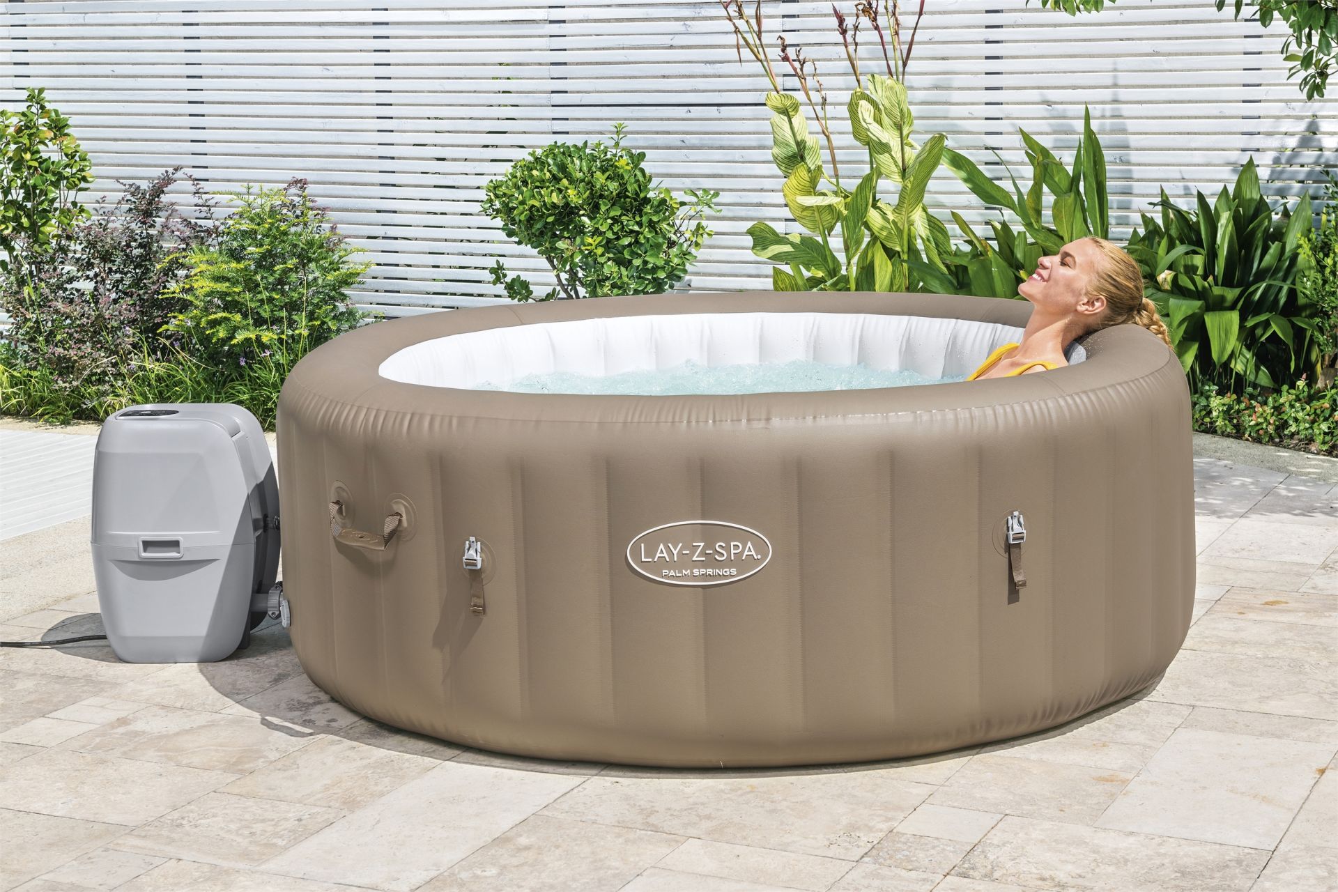 Na een lange dag is er niets zo ontspannend als wegzakken in warm, bubbelend water in uw eigen achtertuin. De Lay-Z-Spa Palm Springs AirJet™ biedt een rustgevende massage-ervaring voor maximaal 6 personen, terwijl het toch snel en eenvoudig op te zetten is. Deze spa bereikt een temperatuur van 40ºC (104ºF) voor ultieme ontspanning terwijl u omringd wordt door 140 AirJet massagebubbels. Sluit simpelweg de pomp aan en kijk toe terwijl het opblaast.