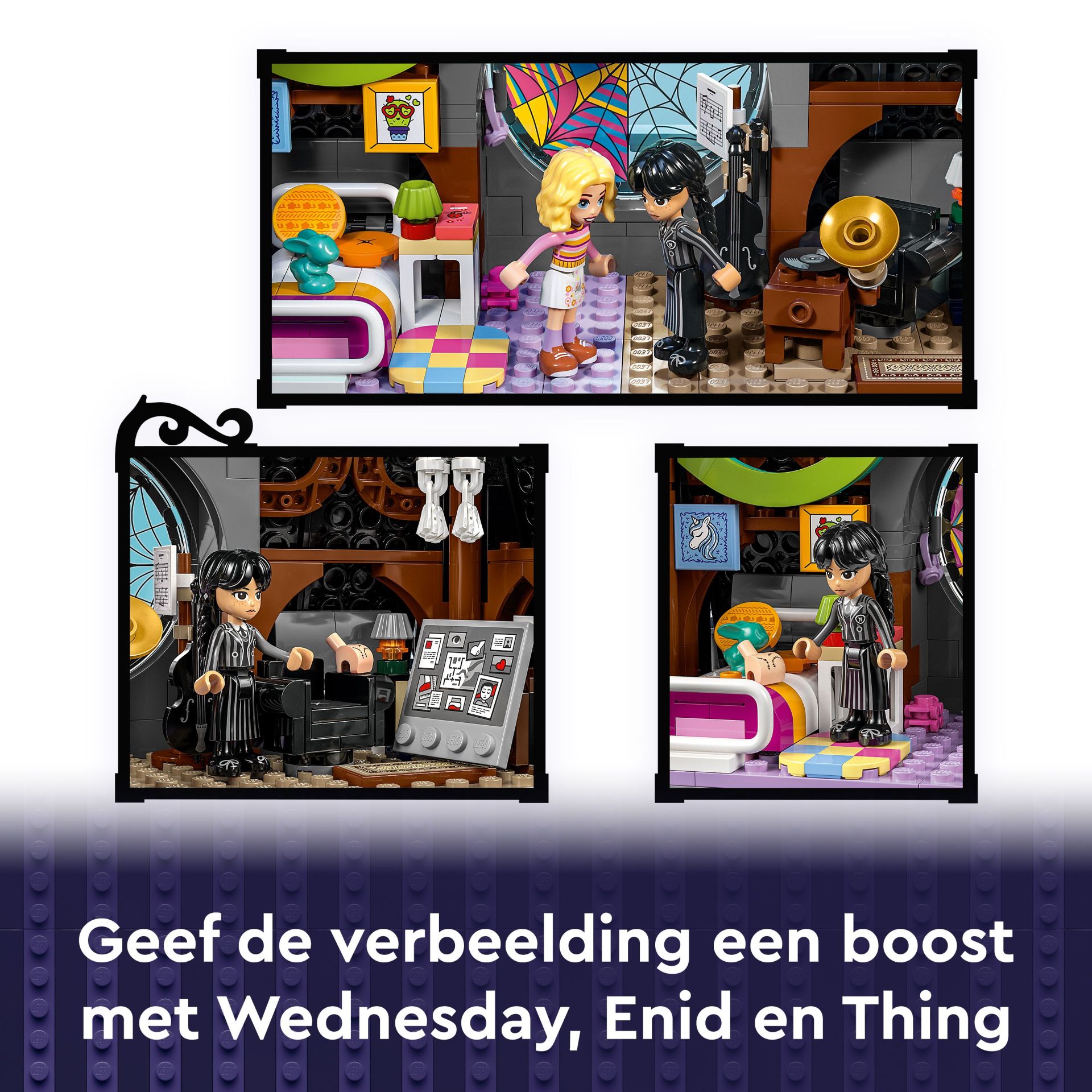 • Gedetailleerd verzamelspeelgoed – een bouwbare set met veel herkenbare voorwerpen en details uit de tv-serie Wednesday om eindeloze mysteries en verhalen te bedenken en na te spelen