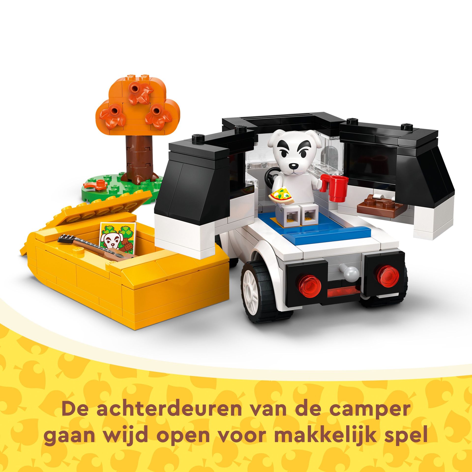Met 3 herkenbare Animal Crossing personages – deze bouwbare speelset bevat minifiguren van K.K., Isabelle en Audie, een model van de servicebalie met een café en een duwbare speelgoed camper LEGO voertuig