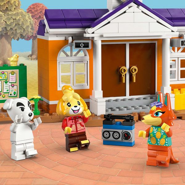 Kinderen bereiden zich voor op het concert van K.K. door zijn speelgoedmicrofoon van het dak van de camper te halen, op de speelgoedgitaar te spelen of zich bij Isabelle aan te sluiten voor groepsgymnastiek. Ze praten bij met Audie in het café voordat ze aan de slag gaan in het gemeentehuis, waar ze een doe-het-zelfplan kunnen krijgen, beloningen kunnen inwisselen bij de geldautomaat en de recyclekist kunnen controleren op nieuwe voorwerpen. Net als in de game bevat de boom een verrassing en kan de vlag van de servicebalie worden gepersonaliseerd. Kinderen kunnen de bouwplaten anders indelen om hun LEGO Animal Crossing set te veranderen.