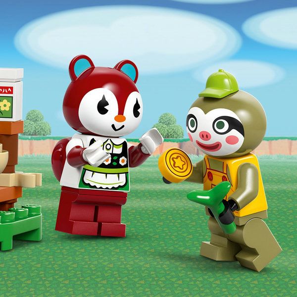 - 2 LEGO Animal Crossing minifiguren – deze tuinwinkelspeelset wordt geleverd met speelgoed dieren minifiguren van de luiaard Leif en de eekhoorn Poppy, beide bekend uit de Animal Crossing videogames