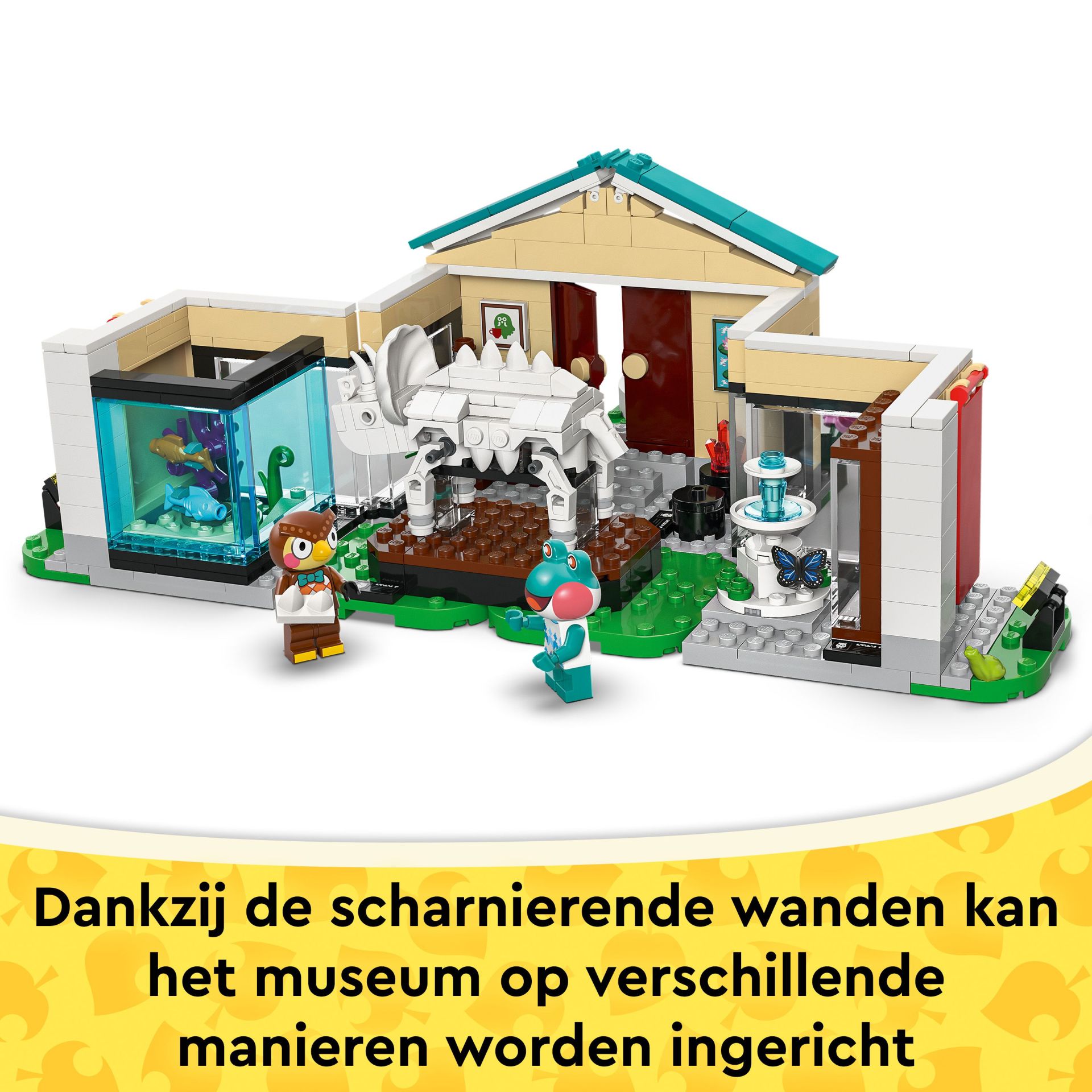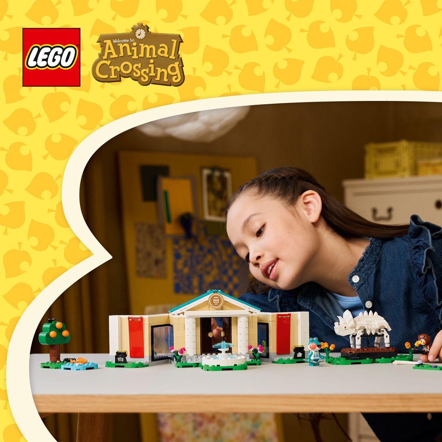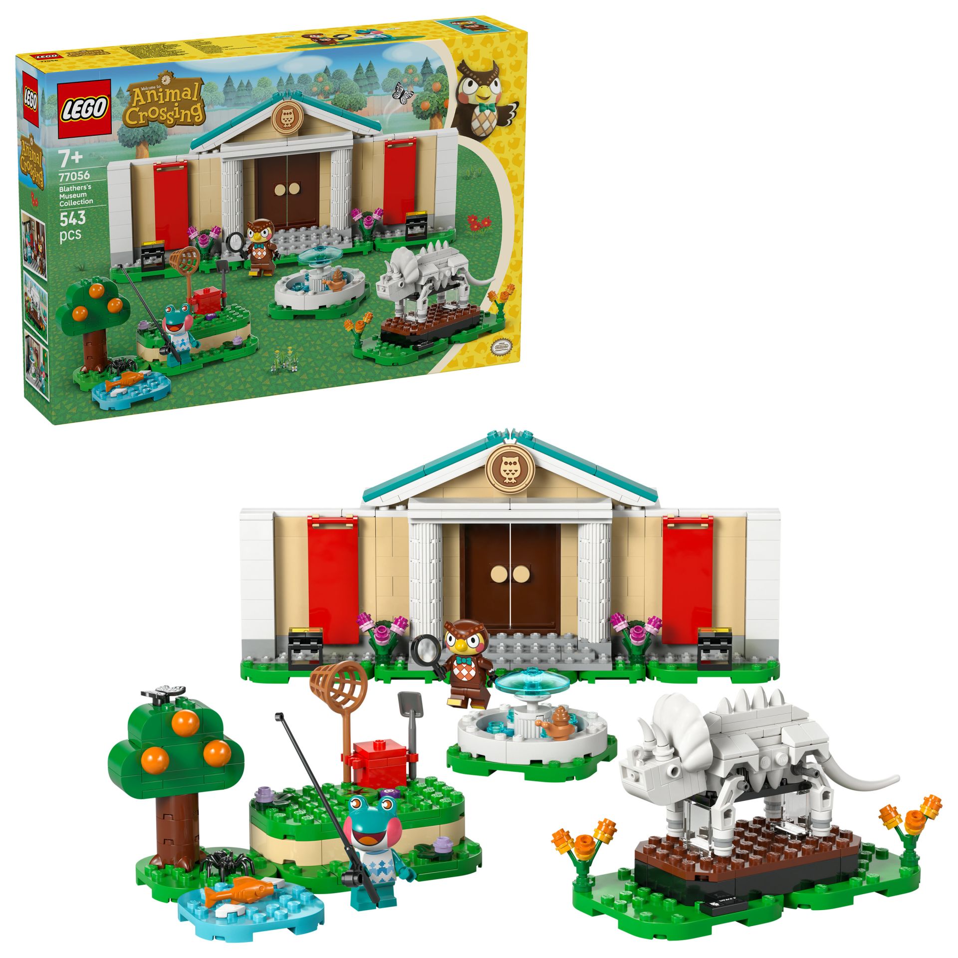 Dit bouwspeelgoed is een LEGO® versie van het museum uit de Animal Crossing games. Kinderen kunnen de tentoonstellingsruimtes aanpassen met hun vondsten. Ze kunnen een schop gebruiken om het ontbrekende staartbeen van de Triceratops op te graven, vissen binnenhalen voor het aquarium en vlinders en griezelige beestjes vangen met een net. De set is aanpasbaar dankzij de scharnierende wanden en verplaatsbare elementen. Er is ook een fontein en het café The Roost, waar kinderen kunnen relaxen met de minifiguren van Blathers en Lily voor ze aan hun volgende avontuur beginnen. Jonge bouwers kunnen genieten van digitaal bouwplezier met de LEGO Builder app, waar ze kunnen inzoomen en modellen in 3D kunnen draaien. De set bevat 543 onderdelen.