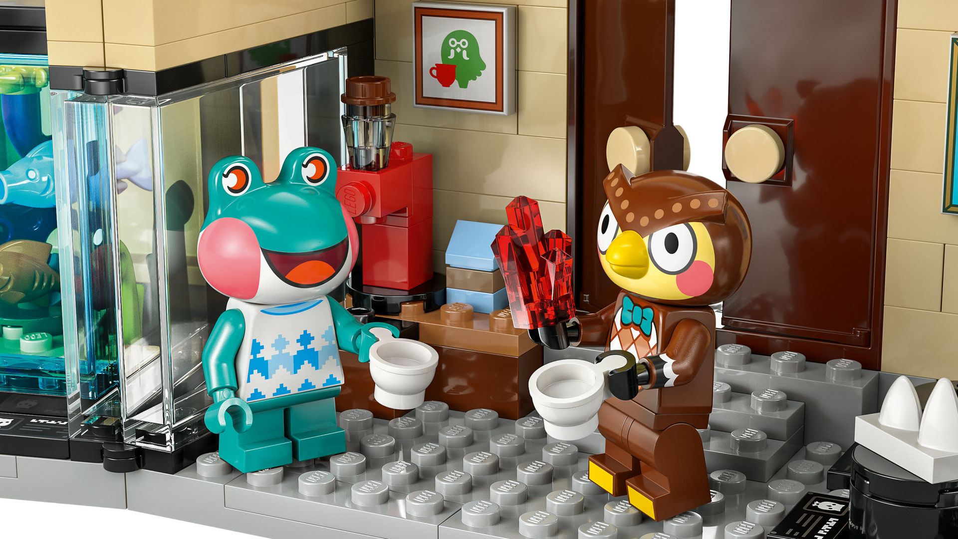 Speelgoed met LEGO® dierenminifiguren – de set wordt geleverd met minifiguren van de uil Blathers en de kikker Lily uit de Animal Crossing™ videogameserie