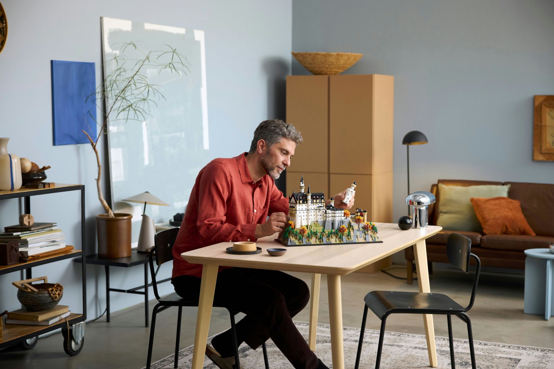 Ontspannende activiteit voor volwassenen – bepaal of het zomer of herfst is met de bomen, bevestig het naamplaatje op de basis aan de voorkant van het LEGO® kasteel en zet je model neer op een plek waar iedereen het kan bewonderen