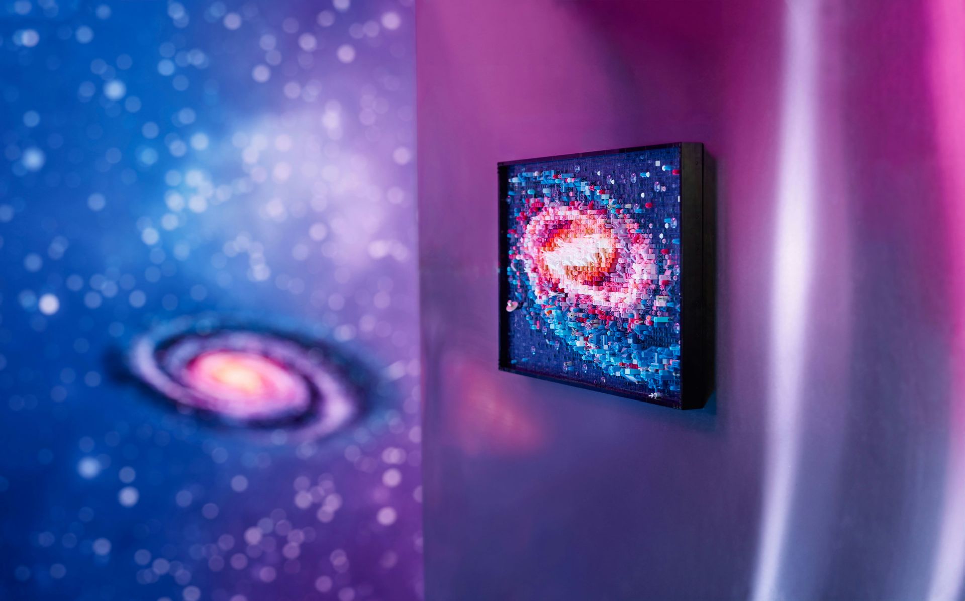 - LEGO® wanddecoratie met 3D-effect – een kunstwerk van de Melkweg gemaakt van 3091 gelaagde LEGO stenen en onderdelen om een 3D-effect met diepte en textuur te creëren