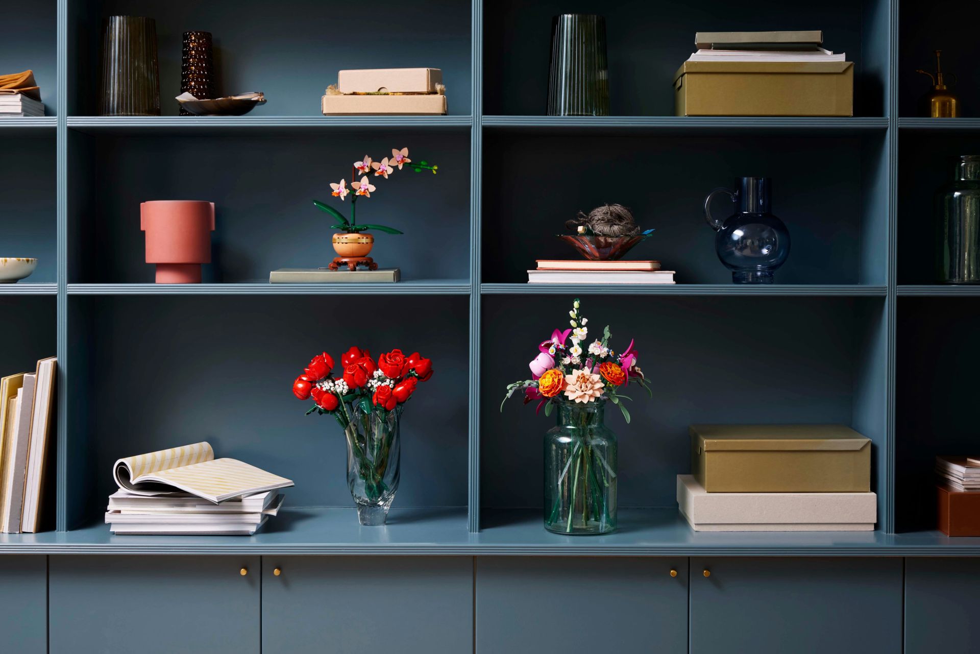 Schik het LEGO boeket – elke LEGO bloem heeft een verstelbare steel, zodat bouwers een persoonlijk boeket kunnen maken door hun creatie te schikken en te herschikken