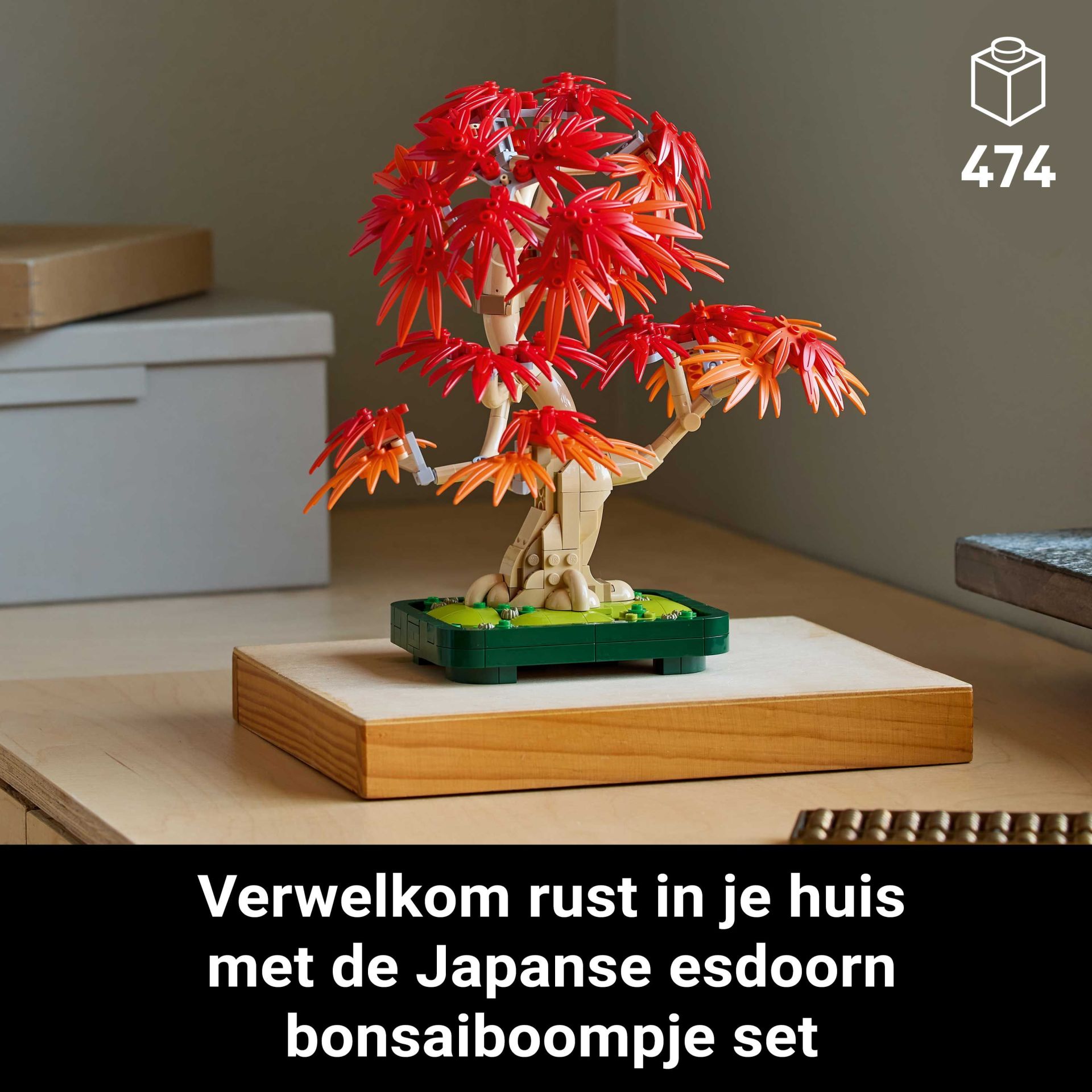 LEGO bonsaiboompje – ontspan je en kom tot rust met het LEGO Botanicals Japanse esdoorn bonsaiboompje bouwpakket voor volwassenen, boordevol authentieke details