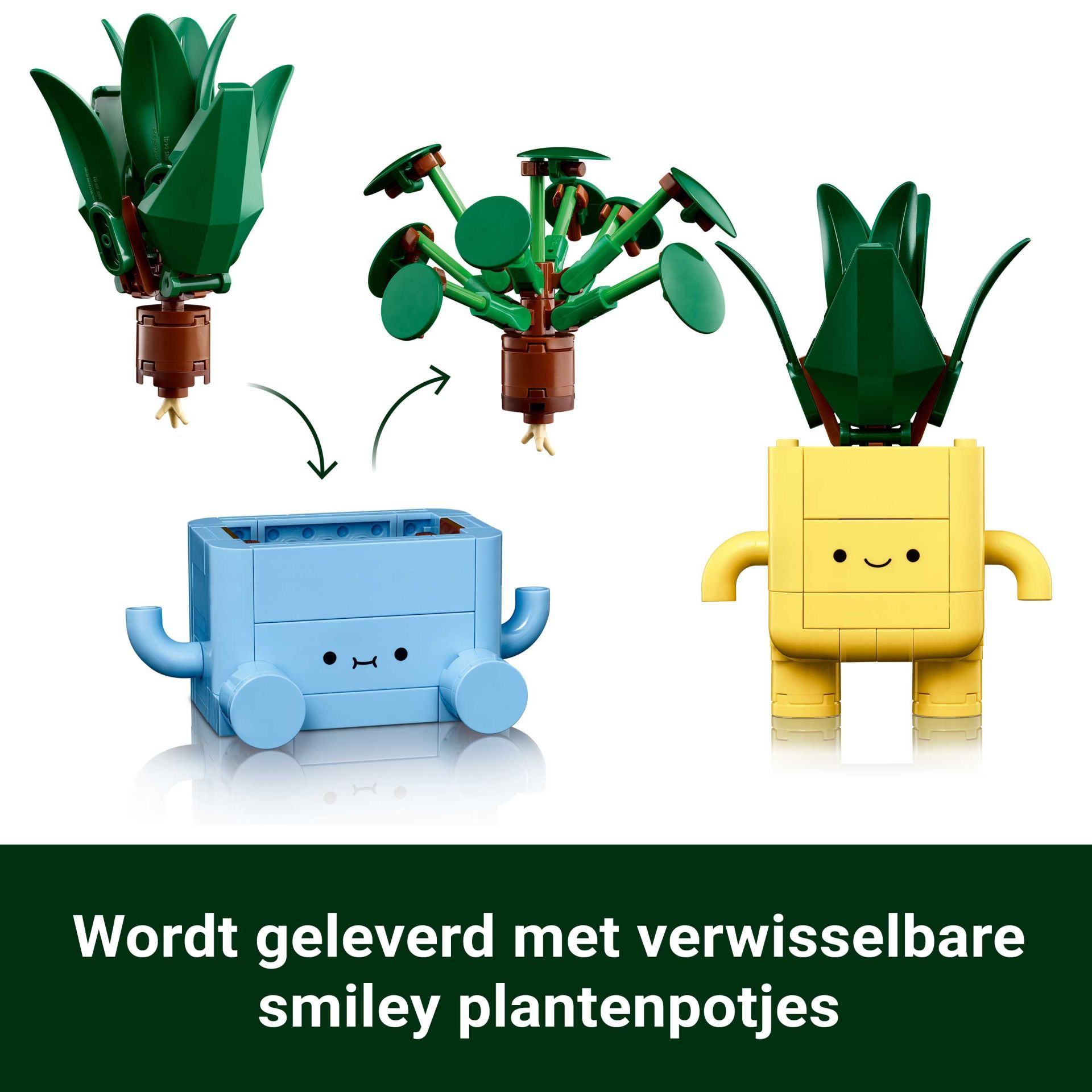 LEGO® planten – stimuleer de creativiteit met de LEGO Botanicals Vrolijke plantjes bouwset voor kinderen vanaf 9 jaar, die ze na het bouwen op een boekenplank kunnen zetten als decoratie