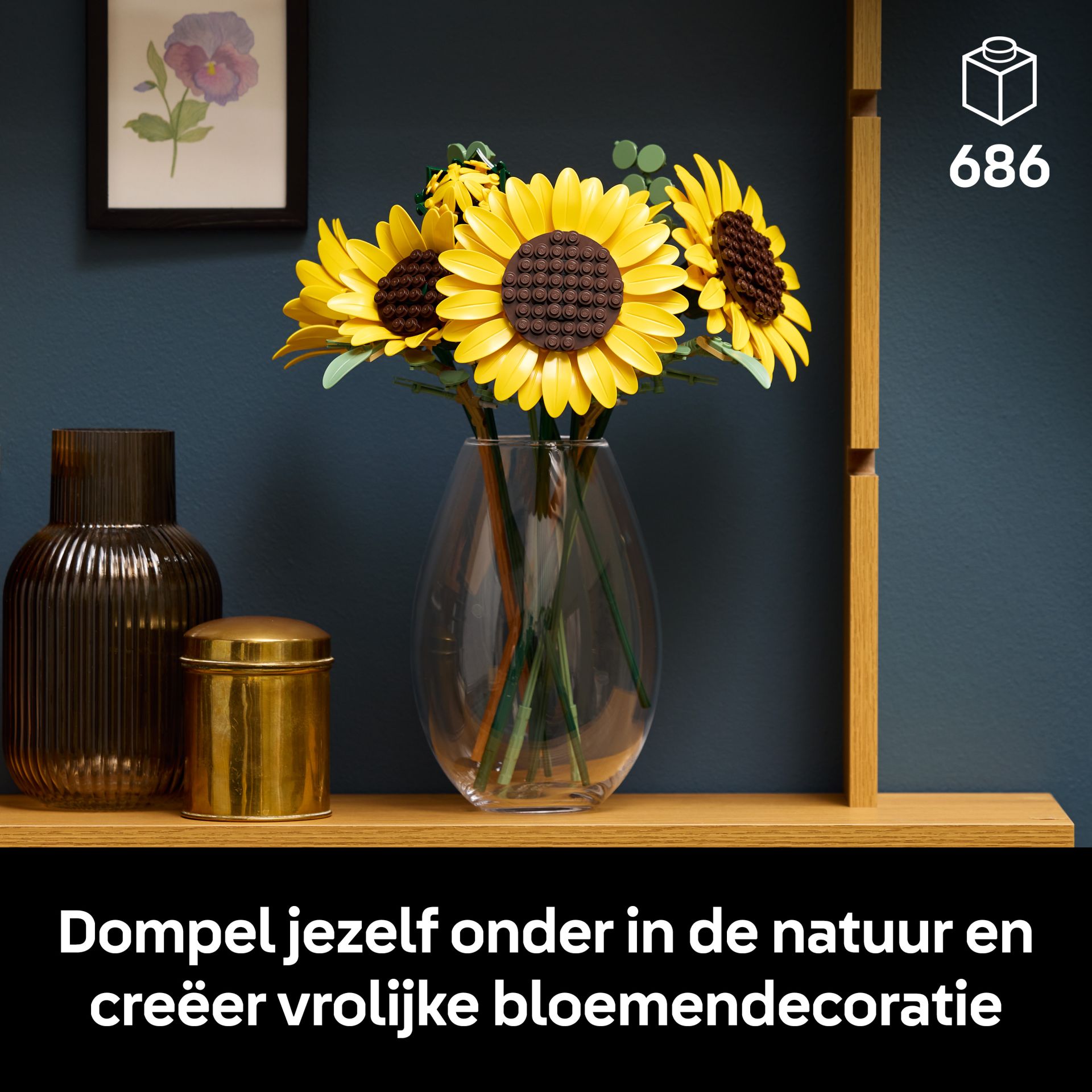 Zonnebloemen staan symbool voor positiviteit, liefde en geluk, dus deze LEGO bouwset is een leuk cadeau voor vrouwen, mannen en natuurliefhebbers voor een verjaardag, Valentijnsdag, Moederdag of een housewarming. Deze set is ook beschikbaar in de LEGO Builder app, waar bouwers hun model kunnen draaien en hun voortgang kunnen bijhouden. De set bevat 686 onderdelen.