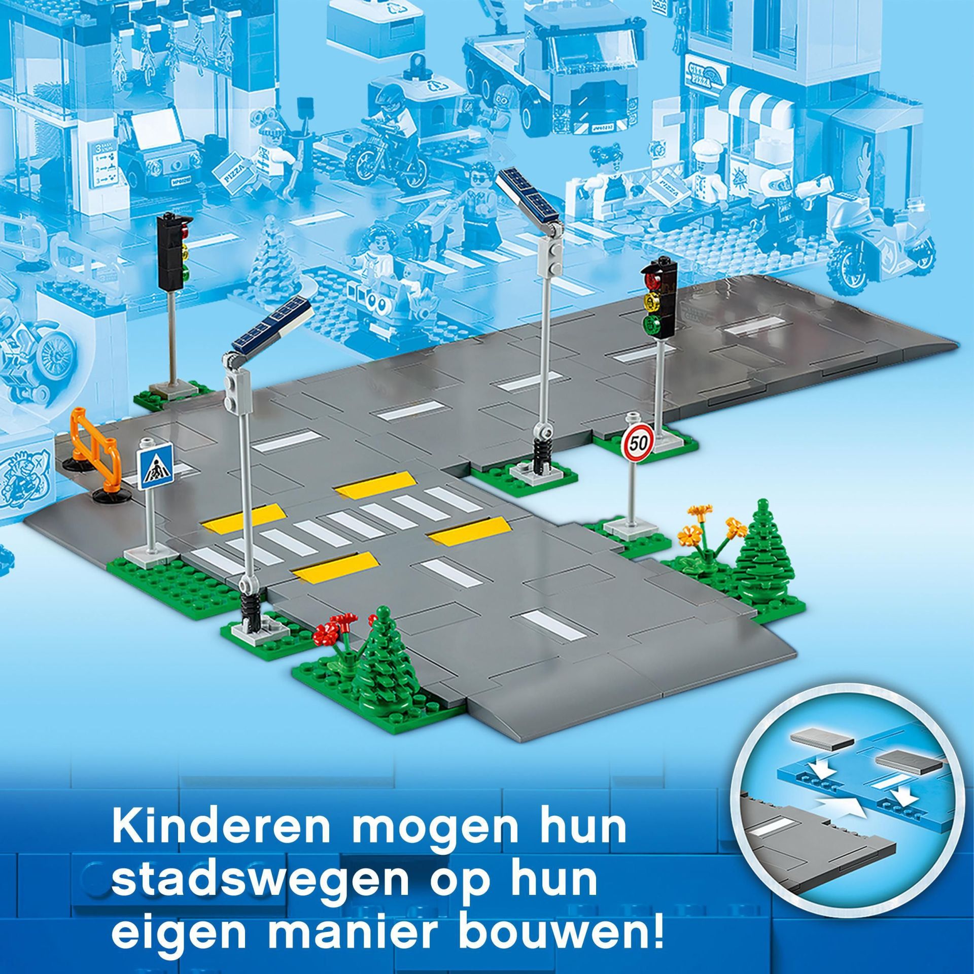 - LEGO® City Wegplaten geven de LEGO creaties van kinderen een realistische achtergrond.