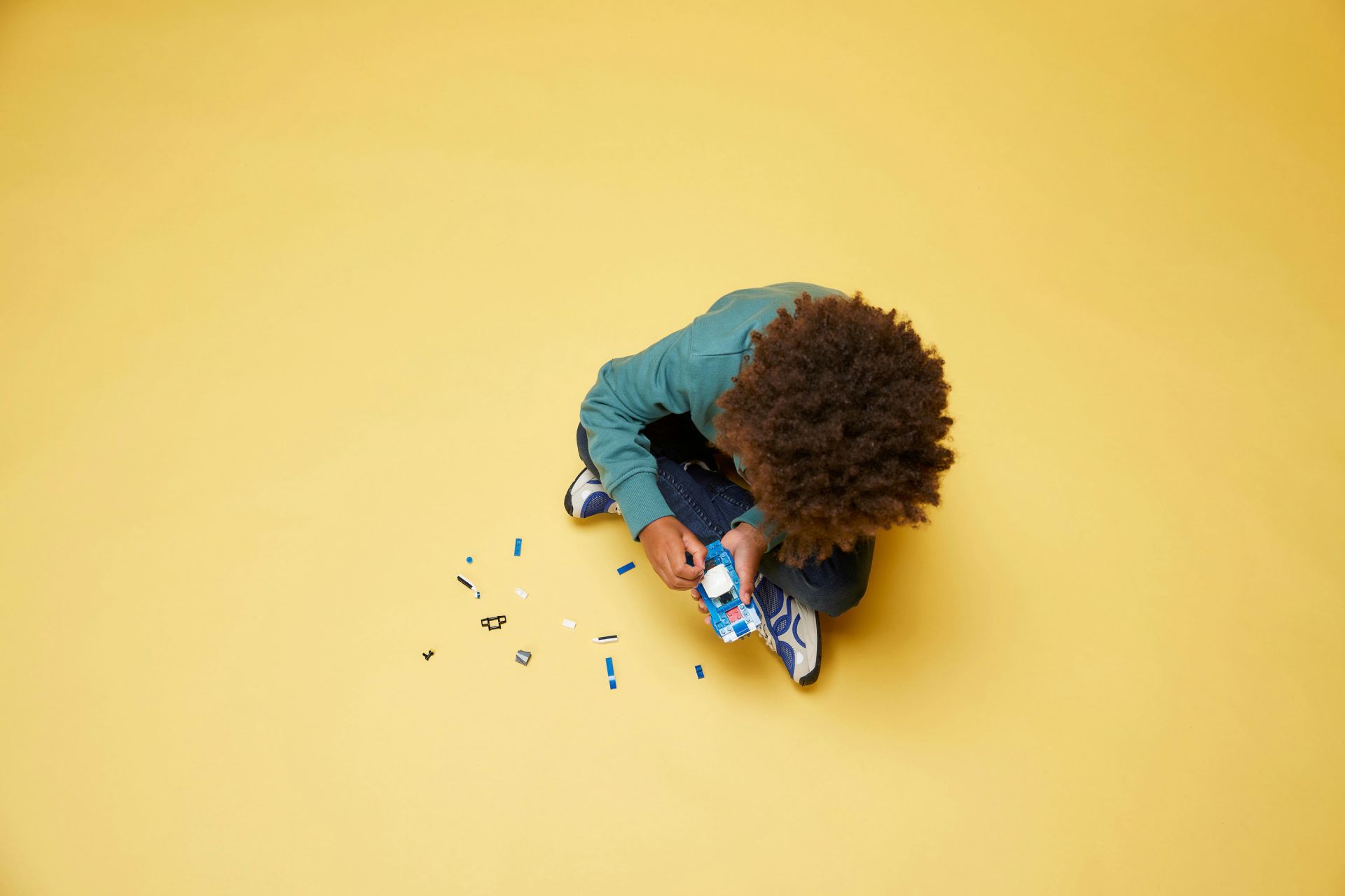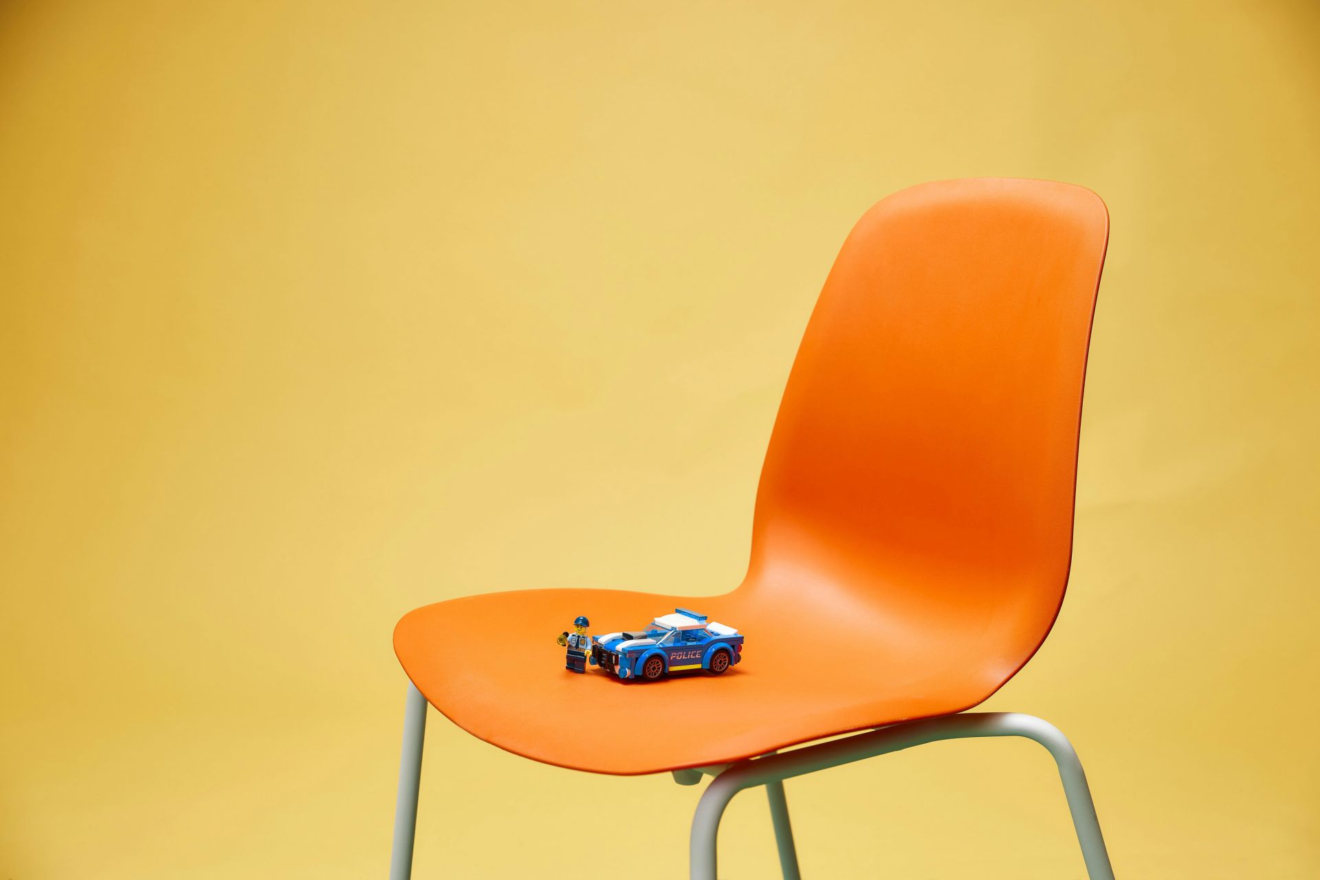 - Wat zit er in de doos – alles wat kinderen nodig hebben om een speelgoedpolitiewagen te bouwen, met ruimte achter het stuur voor de meegeleverde minifiguur van een politieagent