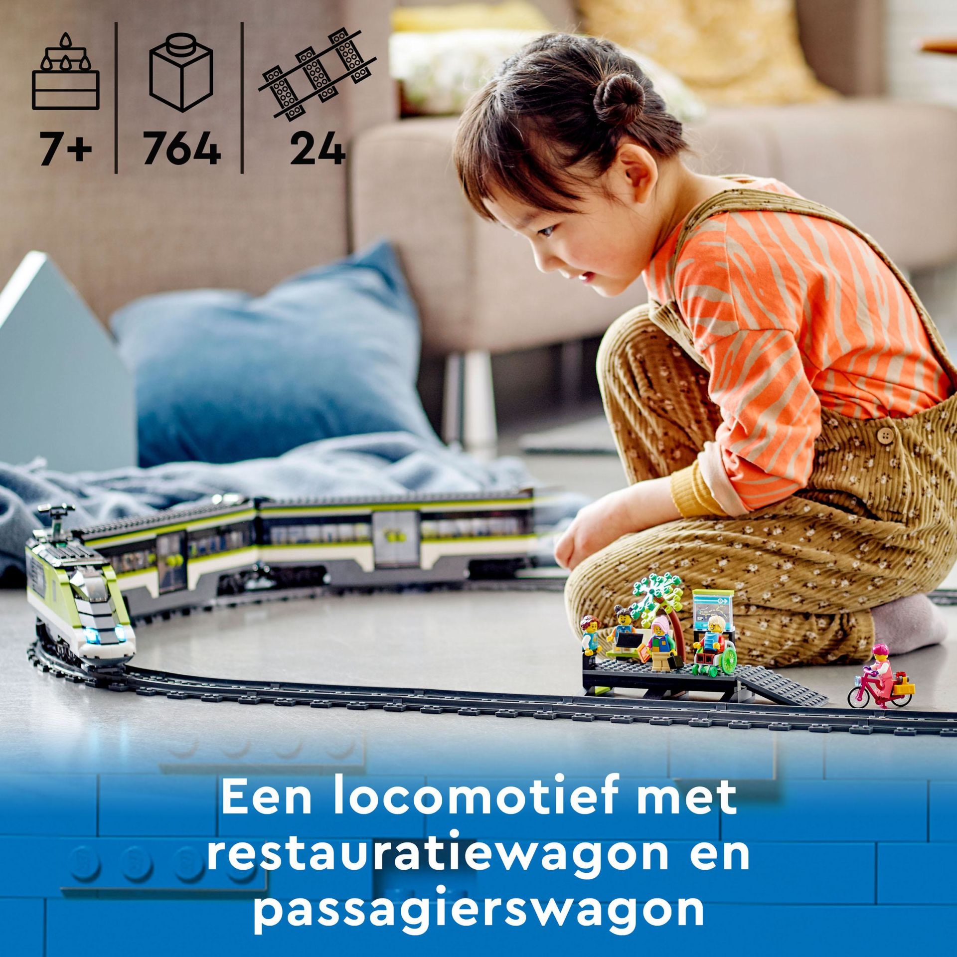 - 24 railelementen – de LEGO® City Passagierssneltrein is inclusief 16 bochten en 8 rechte stukken rails