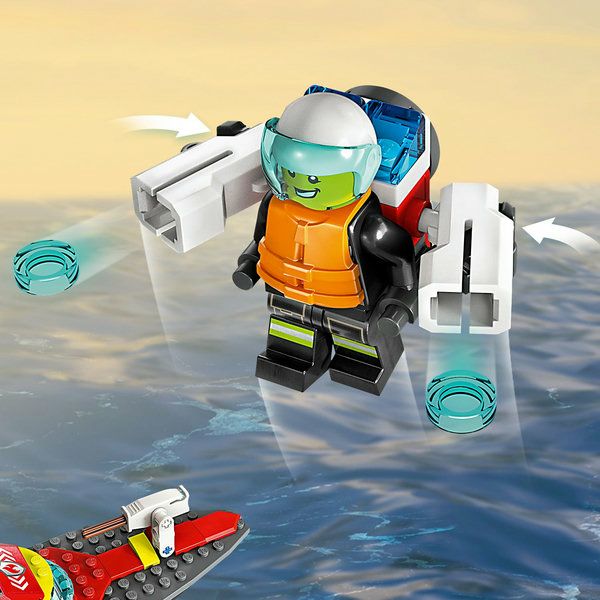 Er wachten kinderen vele spannende brandweeravonturen met deze LEGO City Reddingsboot Brand (60373) speelset. De rubberboot op zee is in brand gevlogen en de kapitein is overboord gesprongen! Door LEGO waterelementen te lanceren uit de brandblusser en het jetpack te gebruiken, kunnen kinderen helpen om de LEGO vlammen op de drijvende speelgoedboot te doven.