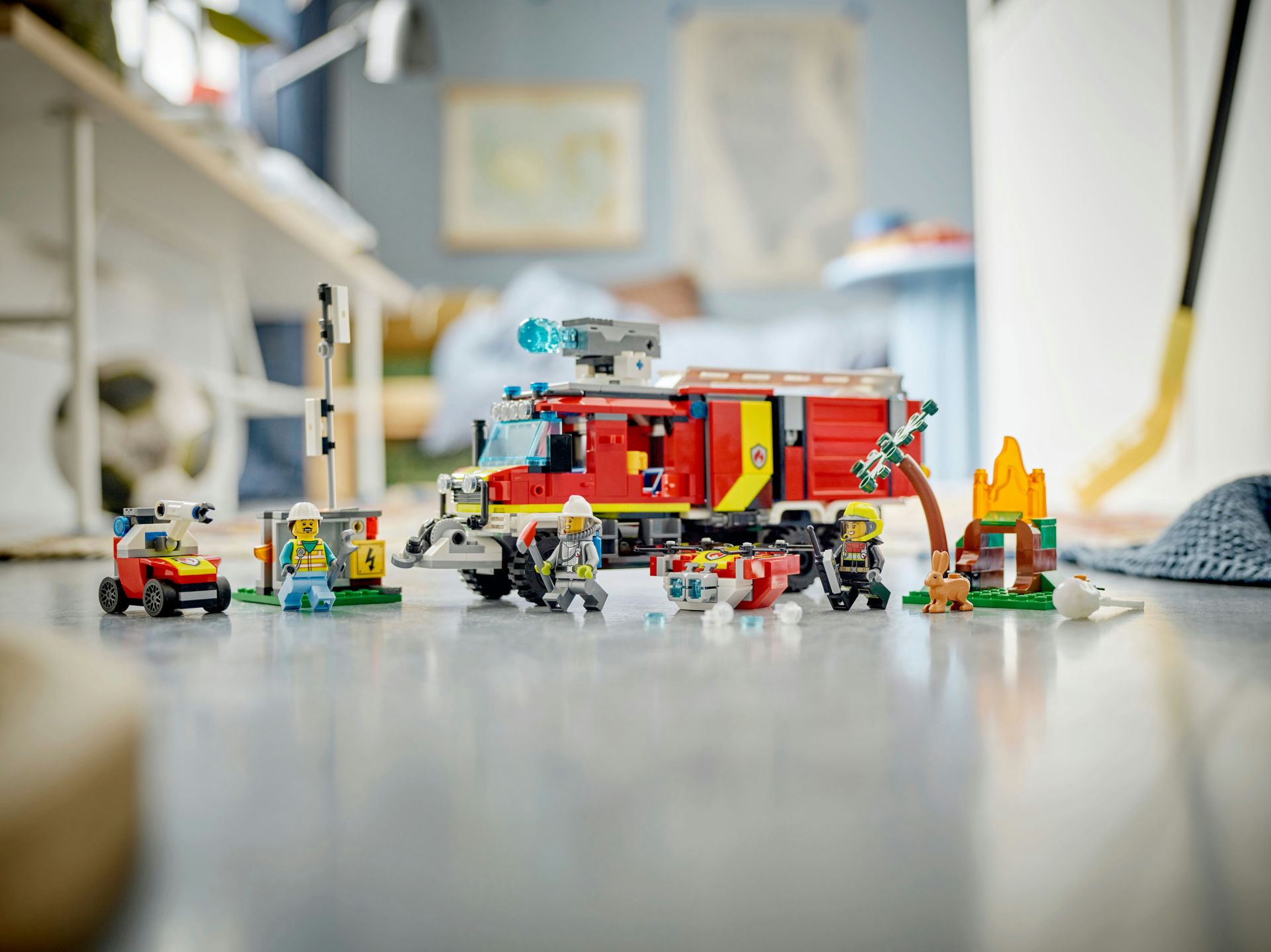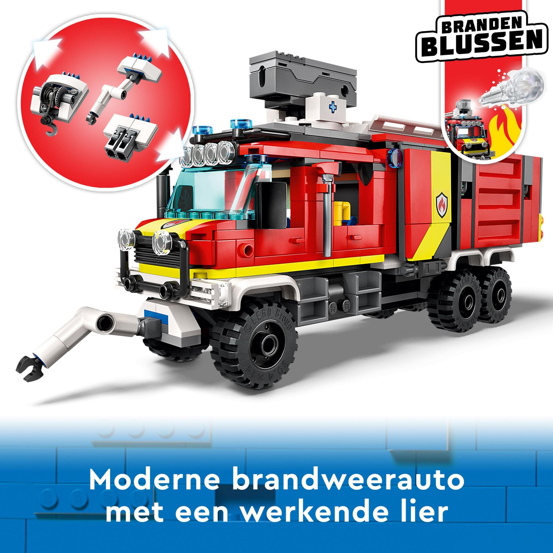 Dit zeer complete brandweerauto speelgoed voor kinderen vanaf 7 jaar is uitgerust met een afneembaar controlecentrum en speelgoeddrones voor op het land en in de lucht. Kinderen kunnen verschillende elementen lanceren om water- en schuimblusacties na te bootsen met het speelgoed. Voeg de brand in het bos en de stad en 3 brandweerfiguren toe voor urenlang brandblusplezier boordevol actie! Deze LEGO bouwset is inclusief stapsgewijze gedrukte bouwinstructies en digitale instructies in de LEGO Builder app – een interactieve handleiding met intuïtieve bouwtools voor kinderen.