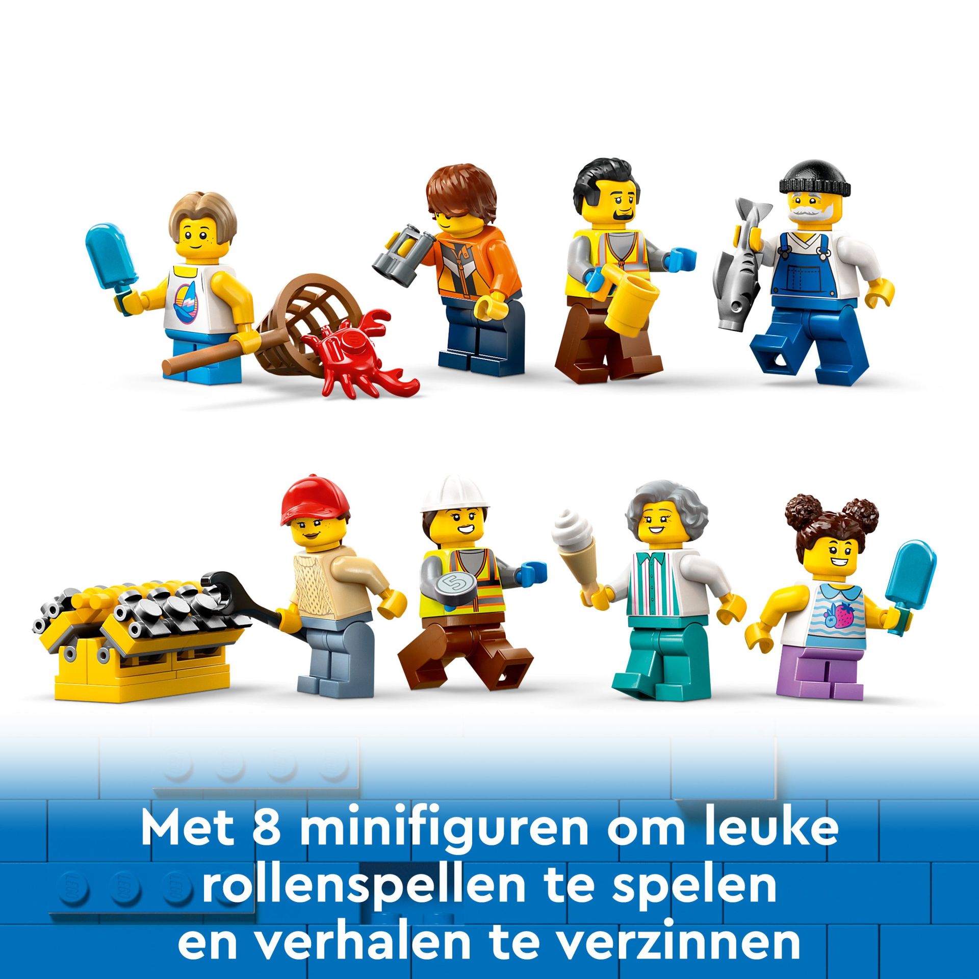 Geef kinderen vanaf 8 jaar een gezellige dag aan de kade met deze LEGO® City Haven met vrachtschip bouw- en speelset (60422). Kinderen kunnen de speelgoedkraan gebruiken om containers van het LEGO schip te tillen en genieten van het toeristische gedeelte van de haven, compleet met een winkel, visrestaurant en strand. De set bevat ook een kleinere speelgoedboot en een waterscooter, plus 8 minifiguren voor rollenspellen en leuke verhalen.Dit creatieve bouwspeelgoed is inclusief stapsgewijze gedrukte bouwinstructies en 3D-instructies in de LEGO Builder app – een digitale bouwpartner met intuïtieve zoom- en draaifuncties waarmee kinderen modellen van alle kanten kunnen bekijken tijdens het bouwen.