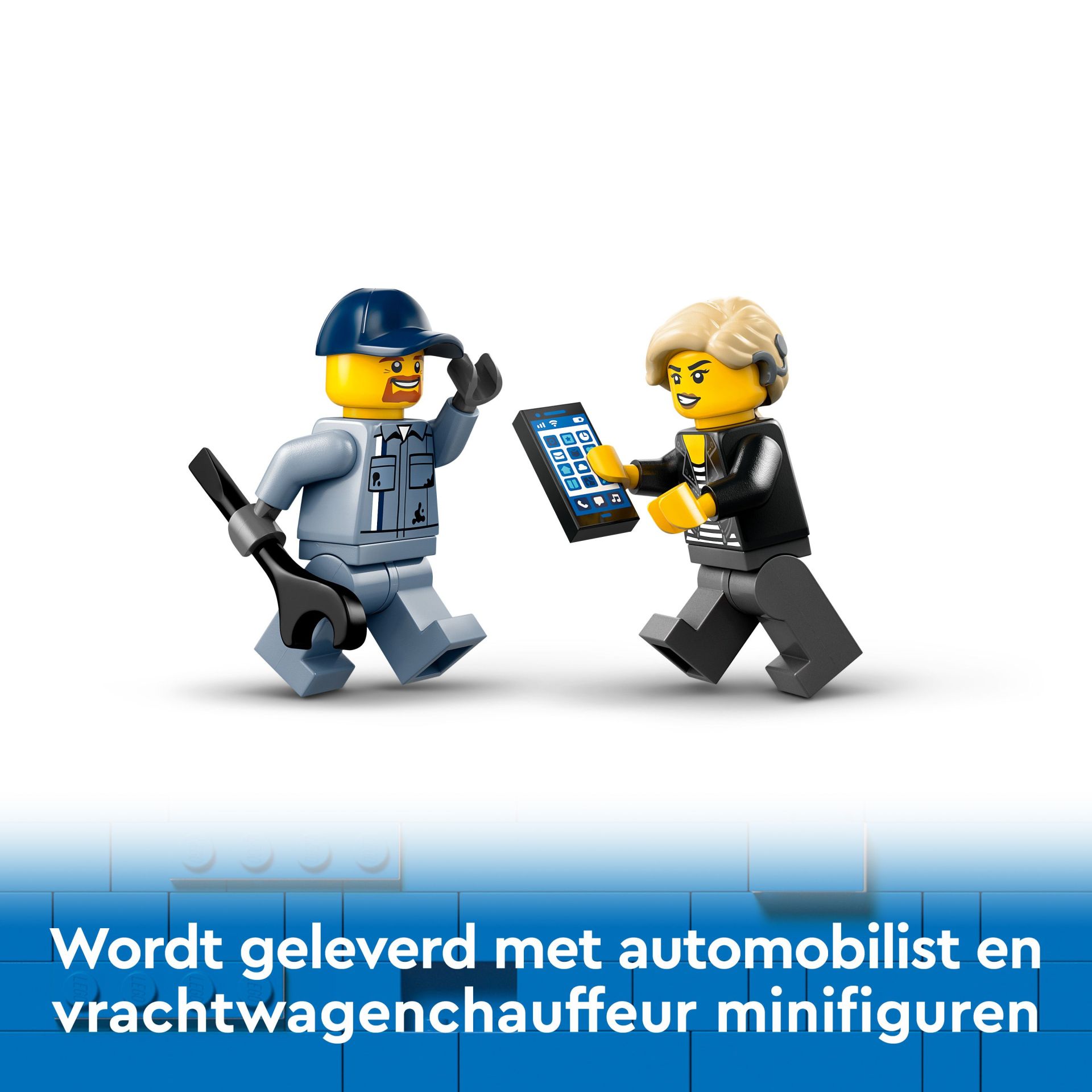 Ga samen met je kleine held op avontuur met de LEGO® City Sleepwagen en sportautoreparatie speelset (60435) voor kinderen vanaf 4 jaar. Deze creatieve bouwset bestaat uit een sleepwagen met robuuste banden, een bestuurderscabine en een werkende takel. Voeg de sportauto en de minifiguren van een chauffeur en automobilist toe en je bent klaar voor urenlang fantasierijk speelplezier.Deze eenvoudig te bouwen LEGO autoset bevat een LEGO startsteen, instructies met afbeeldingen en 3D-instructies in de LEGO Builder app – een digitale bouwpartner met intuïtieve functies waarmee kinderen kunnen inzoomen, modellen kunnen draaien en ze van alle kanten kunnen bekijken terwijl ze bouwen.