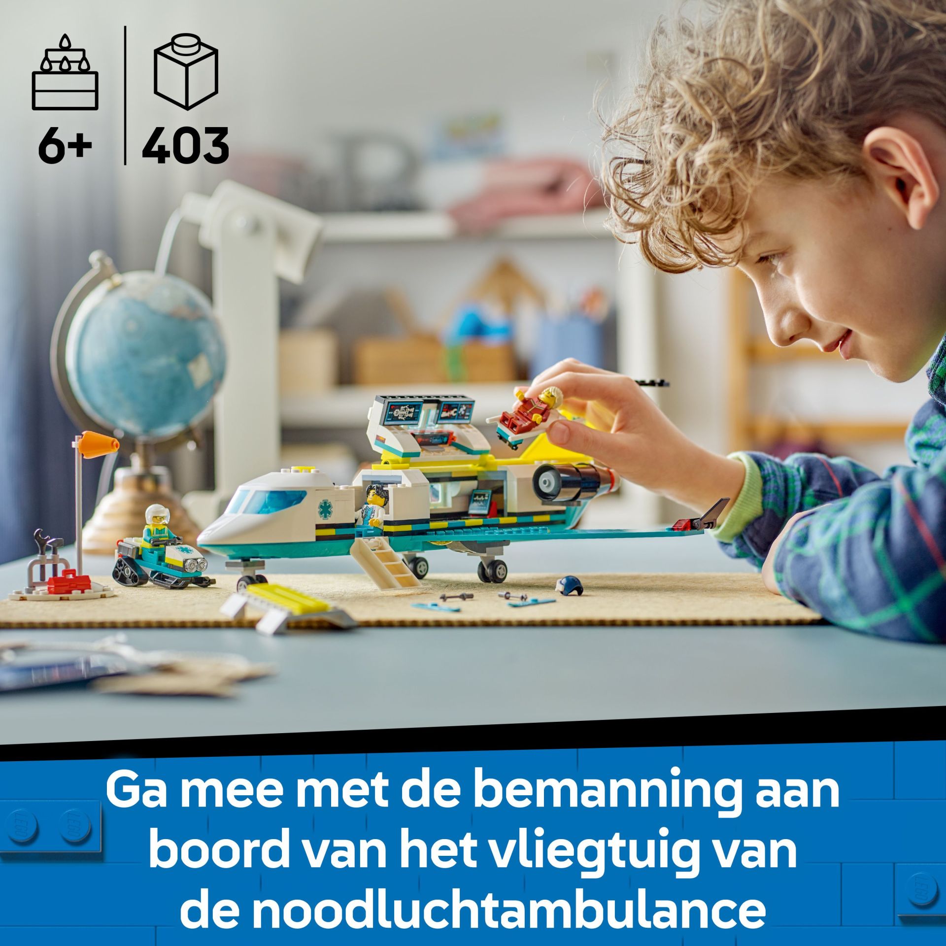 Luchtambulance – er wachten kinderen vanaf 6 jaar reddingsmissies boordevol actie met dit LEGO City Ambulancevliegtuig bouwpakket voor kinderen boordevol leuke kenmerken