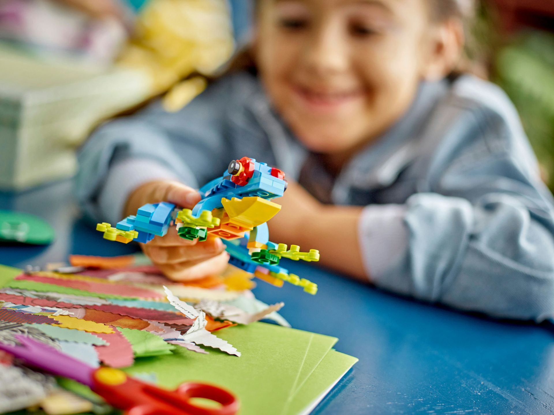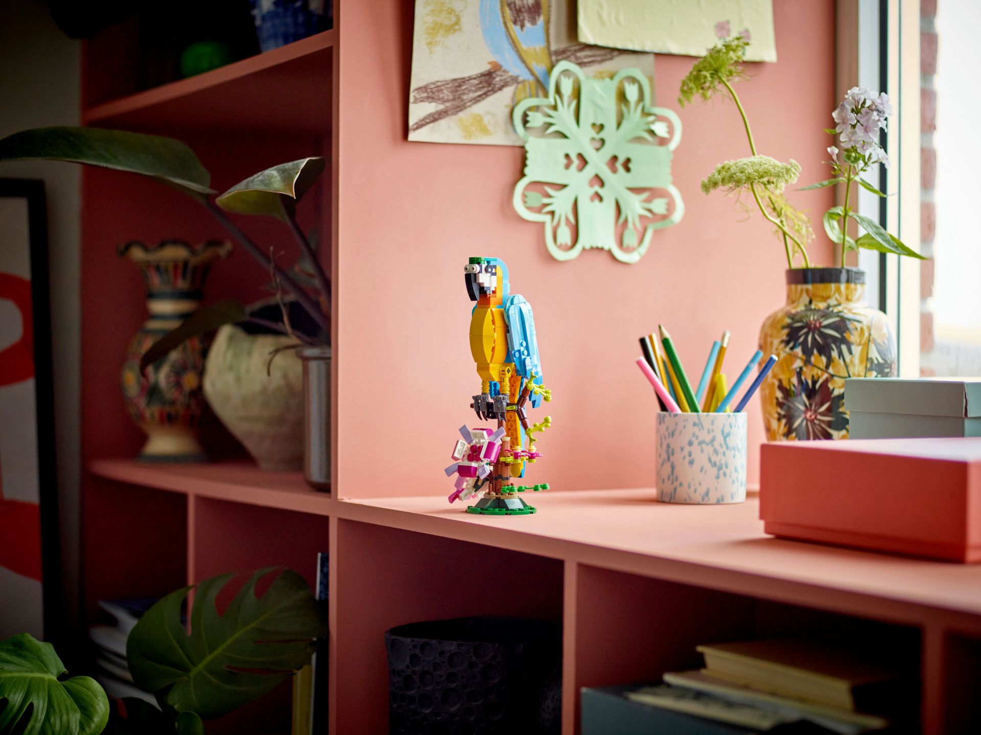 Met deze geweldige LEGO 3-in-1 set kunnen kinderen 3 verschillende exotische dierenmodellen bouwen. Zo kunnen ze een kleurrijke papegaai bouwen die op een boomtak zit en deze vervolgens ombouwen tot een speelse vis die diep in de zee zwemt of een grappige kikker die zijn poten kan bewegen.
