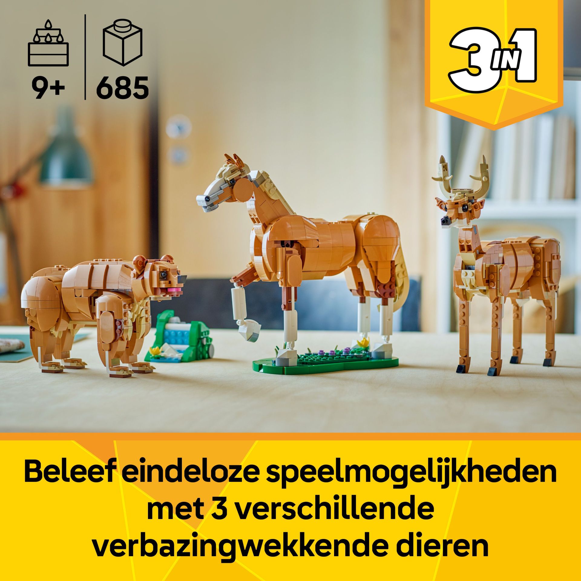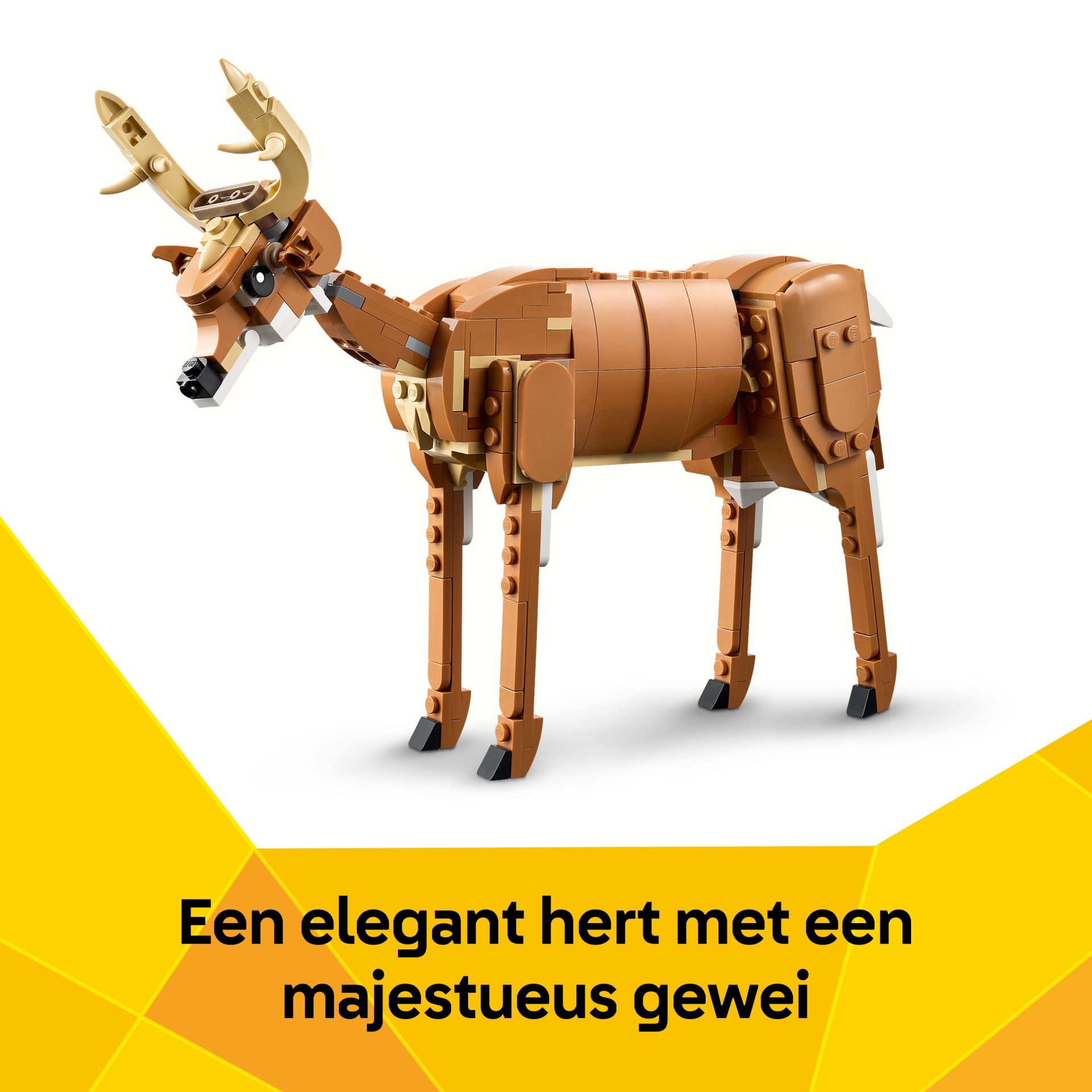 Kinderen krijgen 3 verschillende bouwmogelijkheden met dezelfde set stenen: een verstelbaar LEGO paard, een verstelbare beer met een kleine waterval of een verstelbaar hert. De 3 dierenfiguren in deze transformerende speelgoedset zijn creatieve en leuke cadeaus voor kinderen.