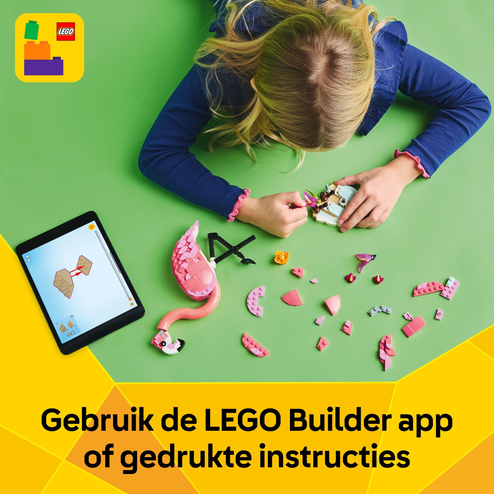 Afmetingen – deze 288-delige herbouwbare LEGO® speelgoedset bevat een roze flamingo van ca. 23 cm hoog.