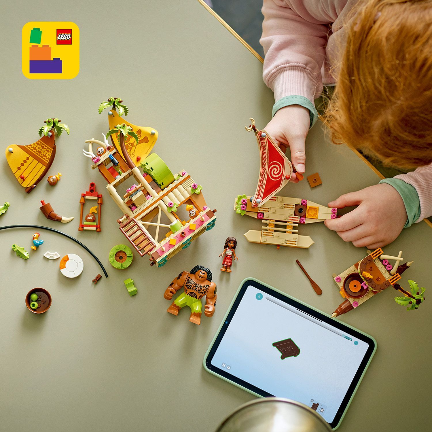 Vaiana botenbouwset – inclusief een schuitboot met 3 delen en een tokkelbaan, een kleinere dubbele kano met opbergruimte, Heihei de haan, Vaiana, Maui, Kotu en nog 5 LEGO® ǀ Disney personages